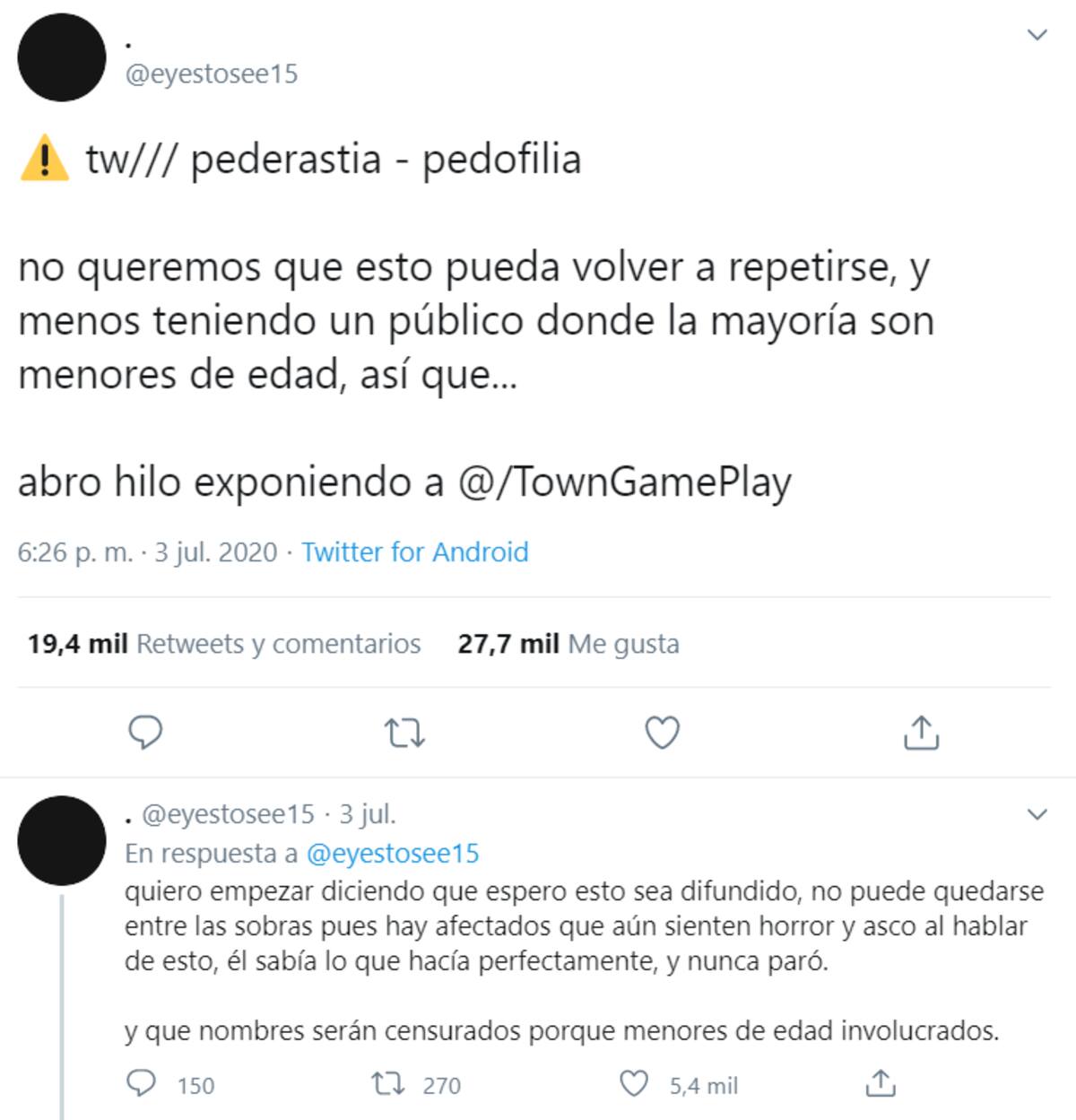 Hace unos días Town había sido acusado en redes sociales por pedofilia y en general de acosar a menores que pertenecían a su grupos de fans.
