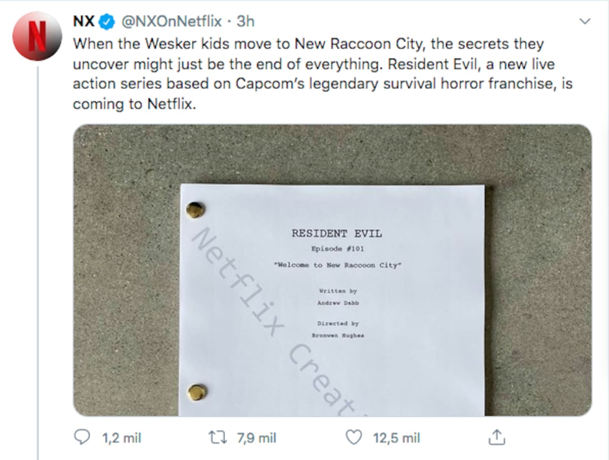 ‘’Cuando los niños Wesker se muden a New Raccoon City, los secretos que descubren podrían ser el final de todo. Resident Evil, una nueva serie de acción en vivo basada en la legendaria franquicia de terror de supervivencia de Capcom, llegará a Netflix’’, escribieron en la descripción de la foto.