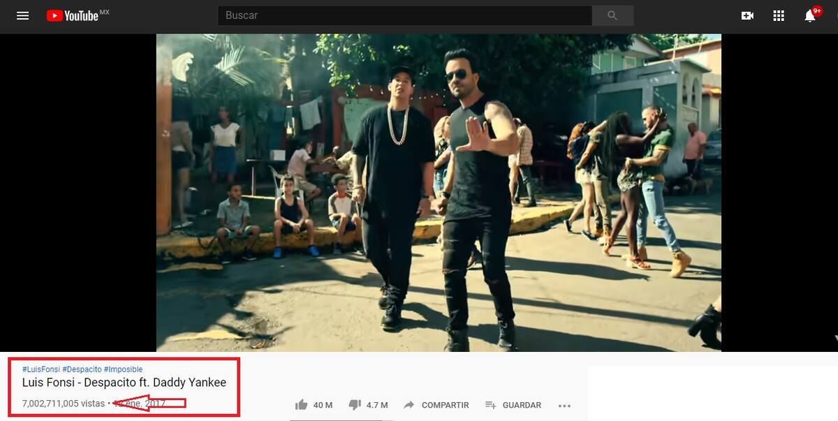 El éxito "Despacito", de los cantantes boricuas Luis Fonsi y Daddy Yankee, que salió por primera vez en enero de 2017, ha superado el récord de reproducciones en YouTube con más de 7 billones de “vistas” del videoclip.