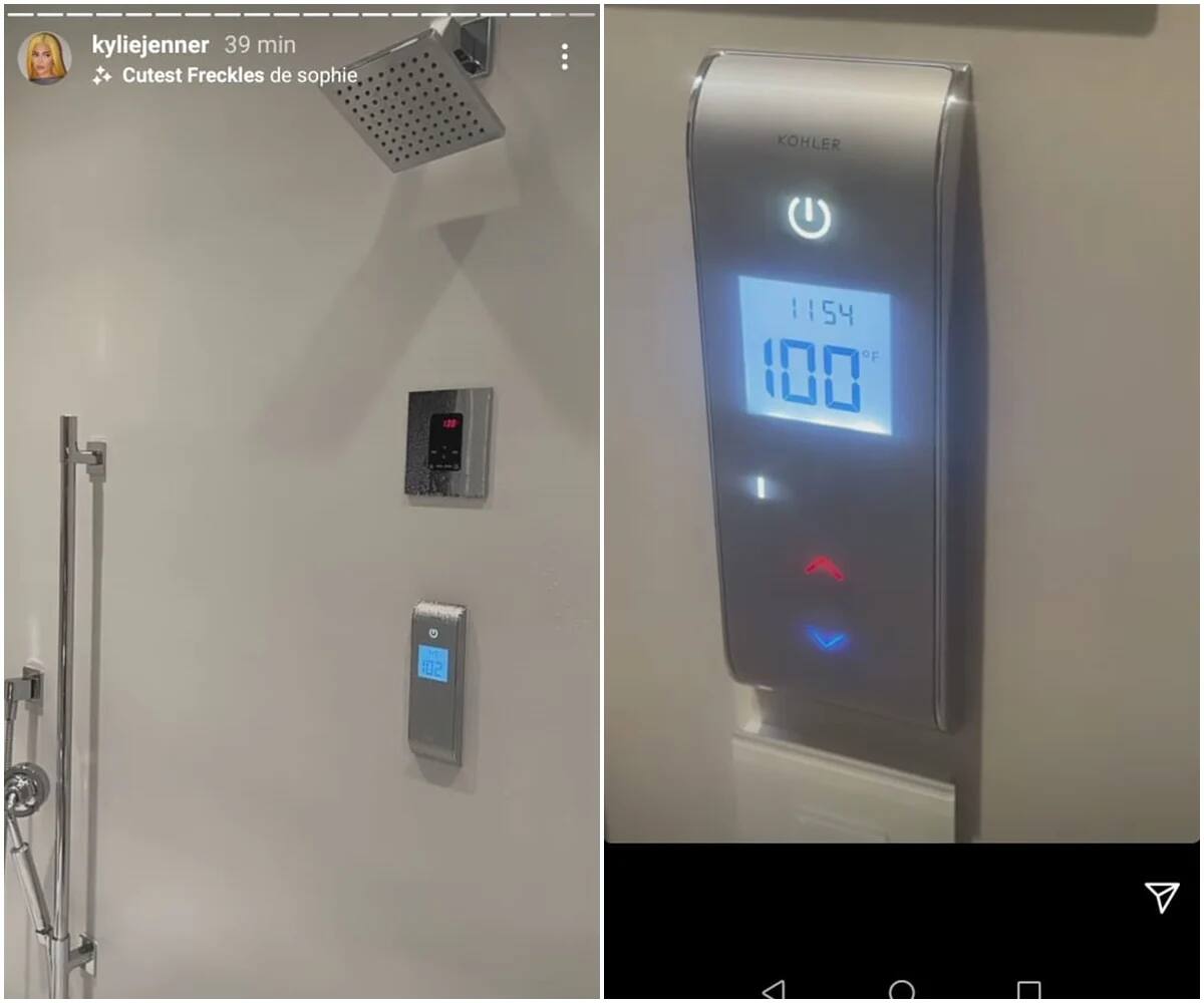 Jenner se dijo molesta de ver su baño por "todo Internet" y sobre todo que les hiciera ruido la presión de su agua, que ella considera buena, pues gusta de tomar baños relajantes, Por ello decidió mostrar más del baño con una interfaz digital e inteligente para regular su temperatura o flujo, su valor puede llegar hasta 40 mil pesos mexicanos.