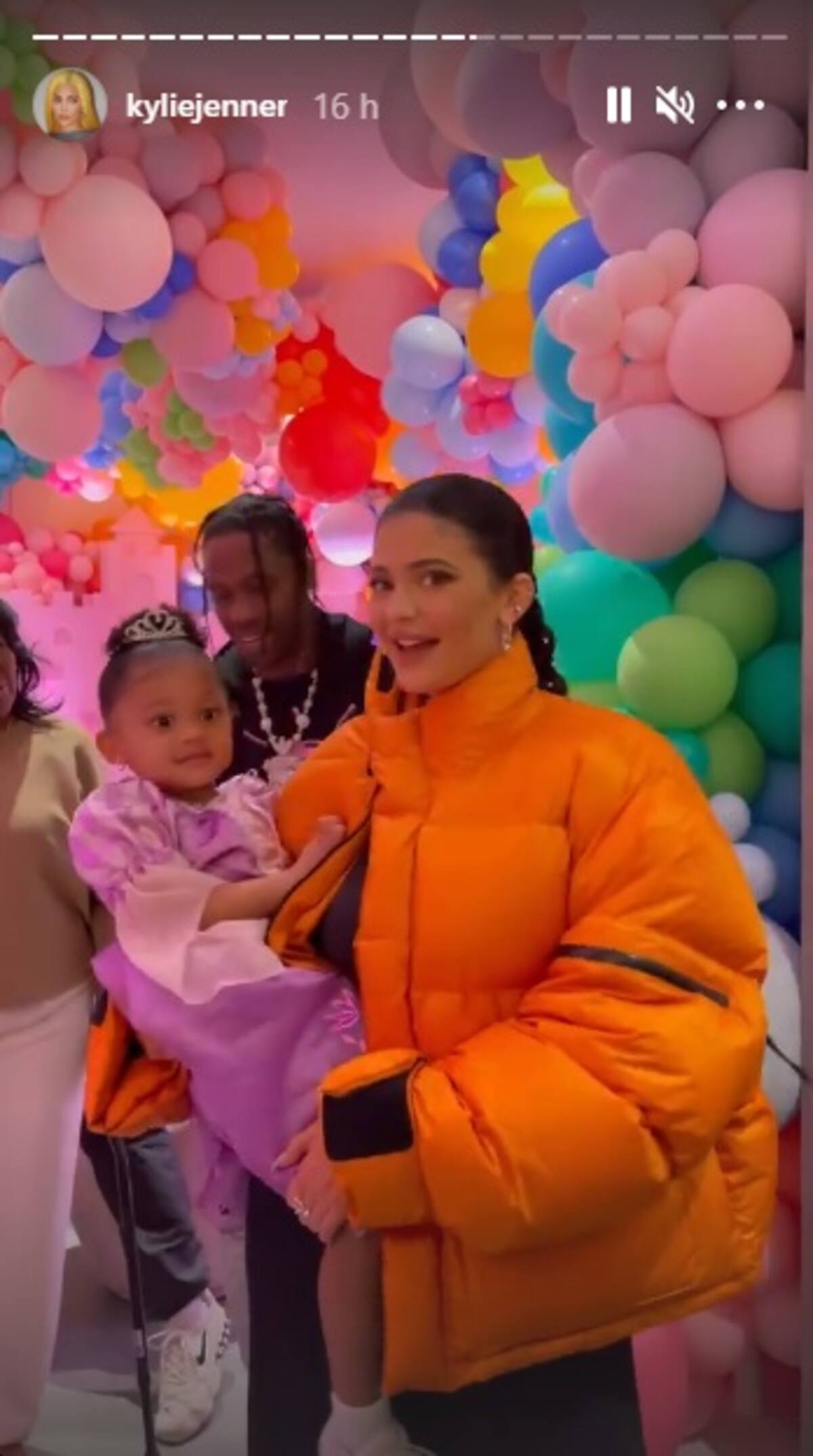 Al festejo asistió su abuela Kris Jenner, quien publicó en su red social una foto que se tomó con la pequeña, y aparentemente la familia de su papá, quienes aparecían en una parte del clip que subió Kylie a Instagram.
