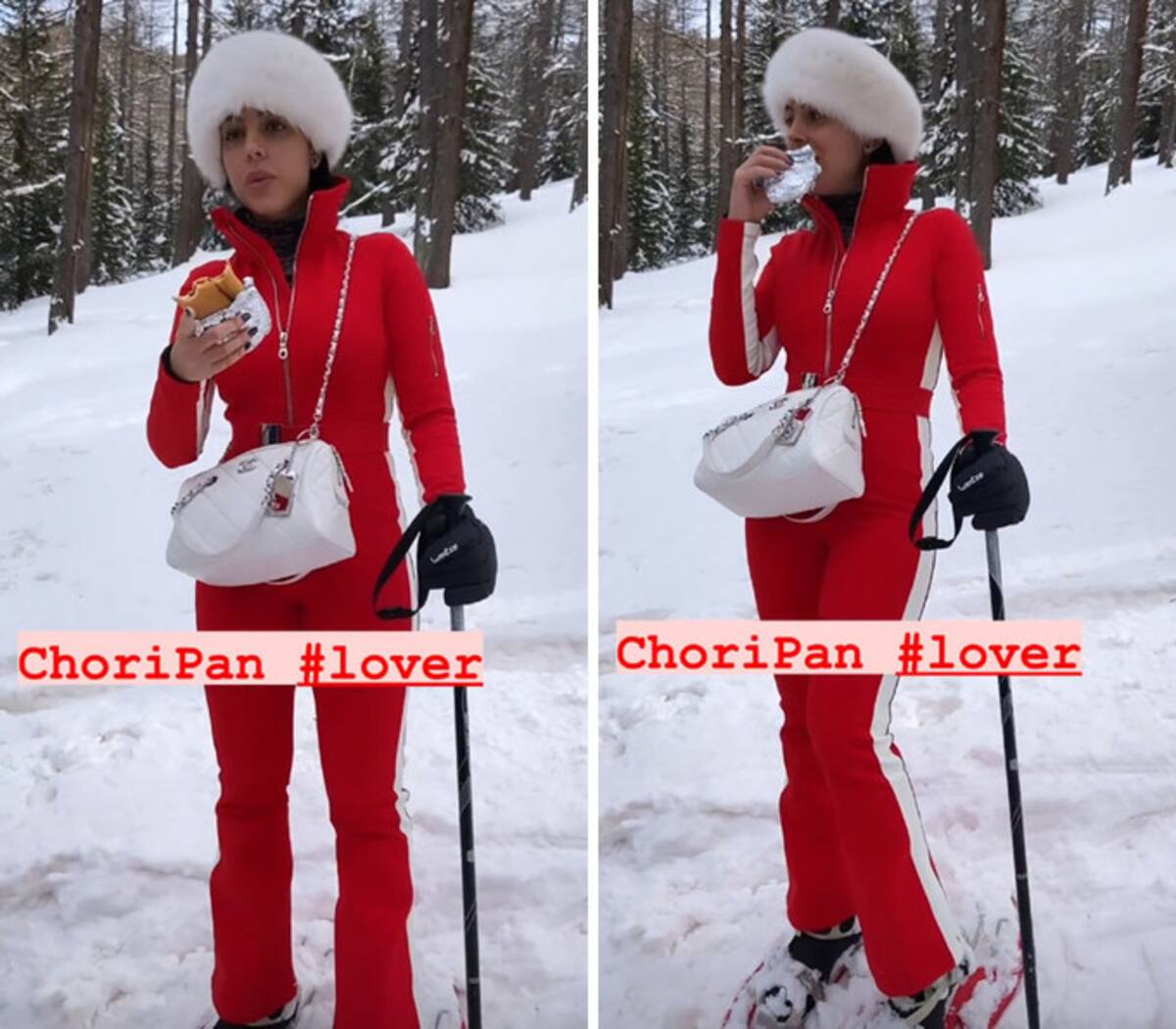 Sus imágenes en la nieve, que causaron controversia en el gobierno italiano, fueron captadas solamente con un bolso Chanel y un bocadillo de chorizo, situación que ha causado empatía con sus seguidores.