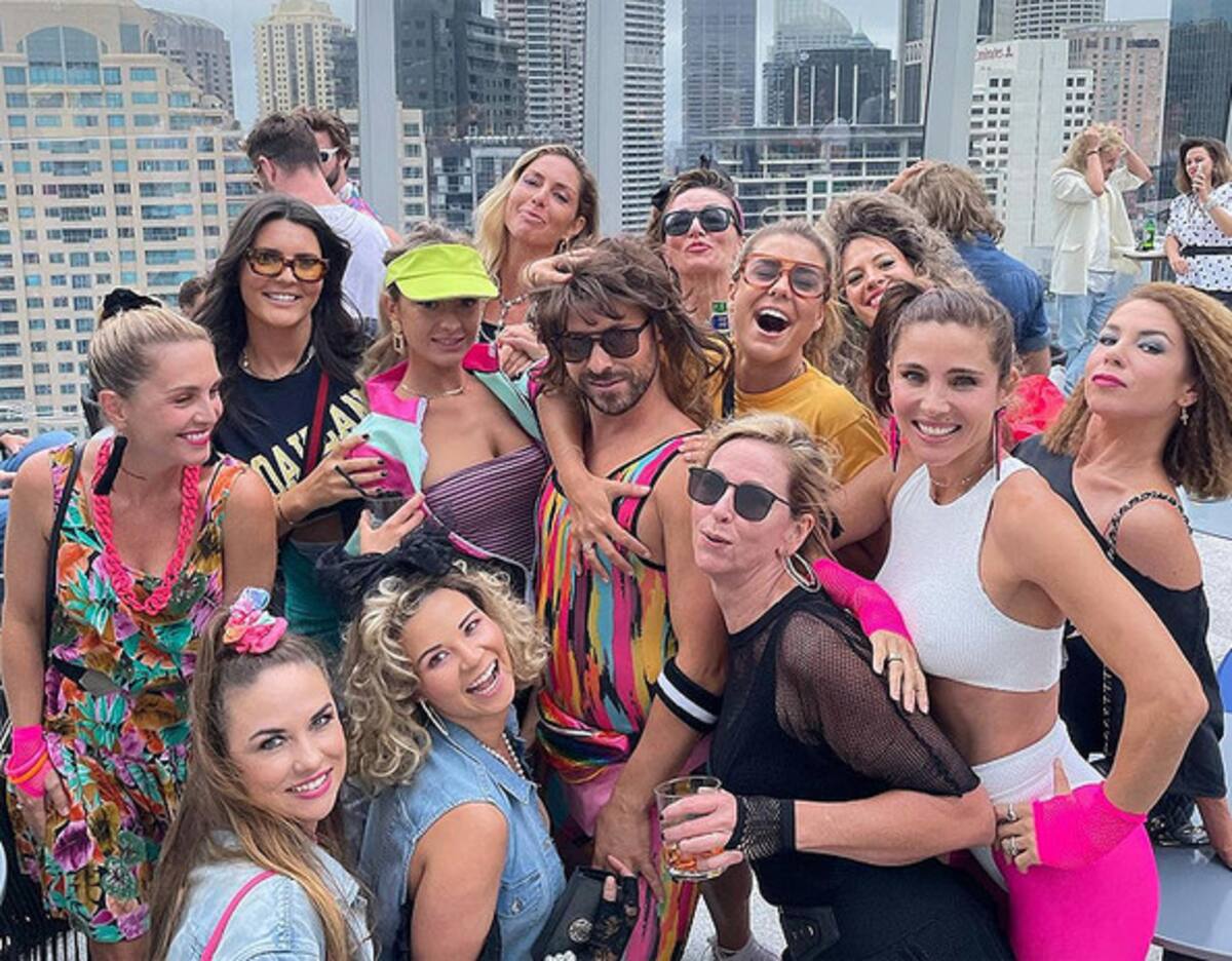 Pantalones de chándal de la época, calentadores y mallas de lo más llamativas, eran la tónica del evento temático con el que la pareja de actores celebraba el cumpleaños de su amigo Aaron Grist.