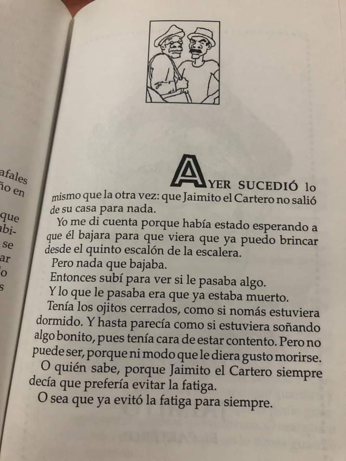 "Subí a ver si le pasaba algo... tenía los ojitos cerrados, comosi nomás estuviera dormido. Y hasta parecía que soñaba algo bonito, pues tenía cara de estar contento. Pero no puede ser, porque ni modo que le diera gusto morirse", se lee en parte del texto que el personaje de Bolaños dedicó a "Jaimito".