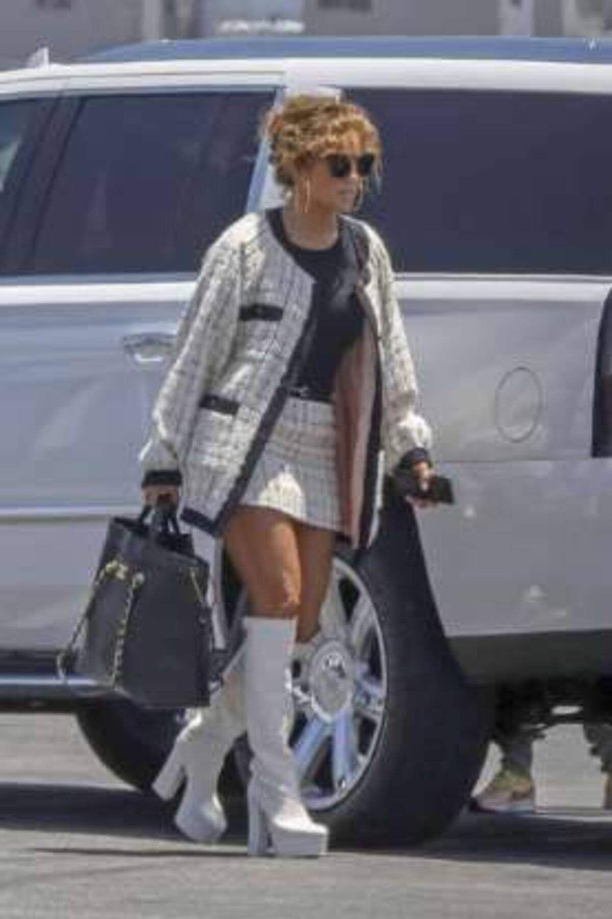 Jennifer, en el set de un video musical en Brooklyn, con unas botas a la rodilla acordonadas y en otra ocasión mostrando sus mejores pasos de baile con un short de látex, botas altas y top de brillantes
