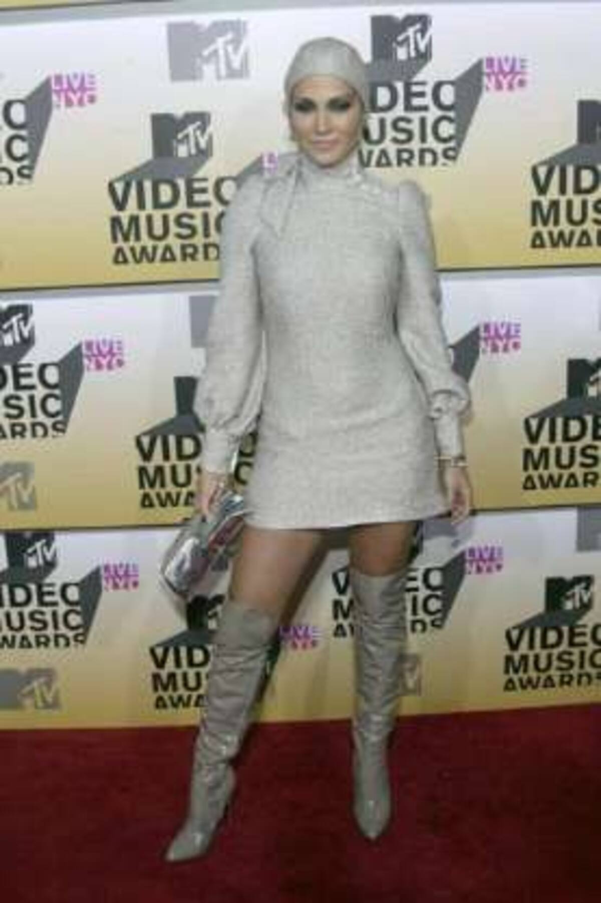 Las botas altas se convirtieron en un must de sus atuendos, como lo demostró con este outfit en color plata que lució en 2006. Aunque en ese año la parte más llamativa de su atuendo fue el pañuelo con el que recogió su cabello.