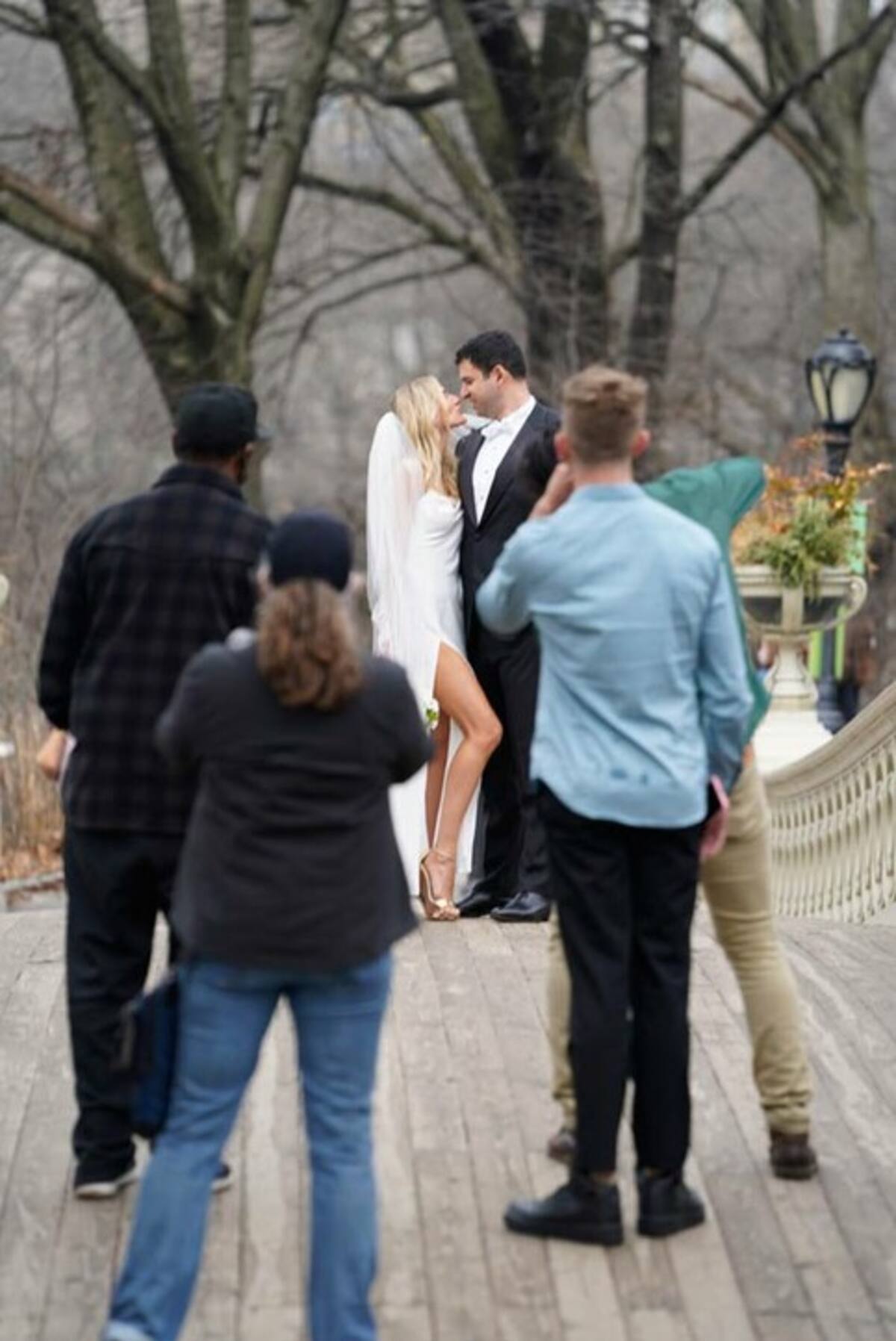 El actor paseaba por Central Park cuando se encontró la sesión de fotos y no dudó en posar con ellos.