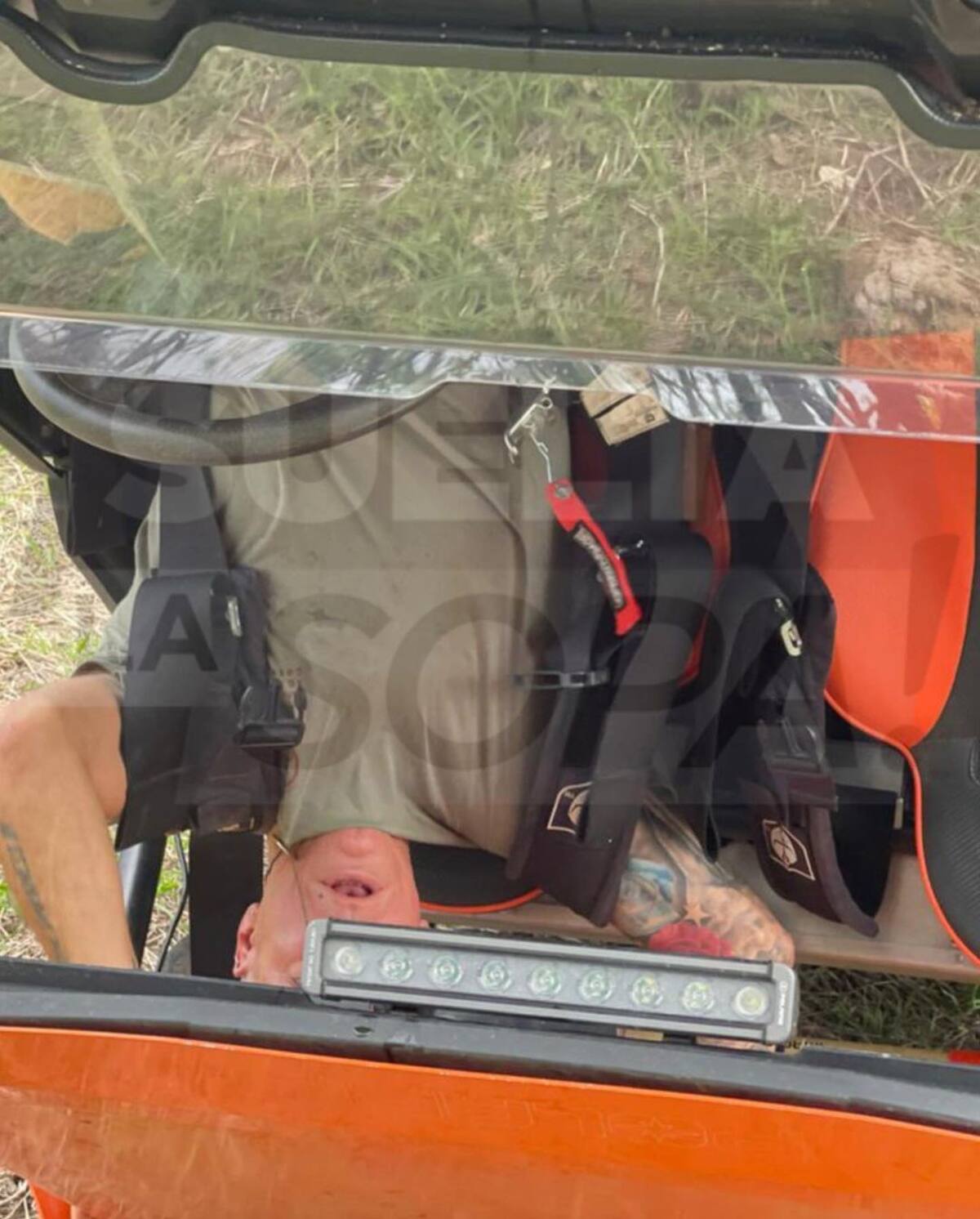 En las imágenes se puede apreciar que el vehículo en el que se transportaba el actor giró y se volteó, por lo que Fernando Carrillo quedó de cabeza, sólo sujeto por el cinturón de seguridad del carro. Después de soltarse, el actor de 55 años se mantuvo quieto, esperando a que alguien lo revisara y le ayudara a salir. De fondo se puede apreciar que el lugar en donde estaba habían algunas vacas.