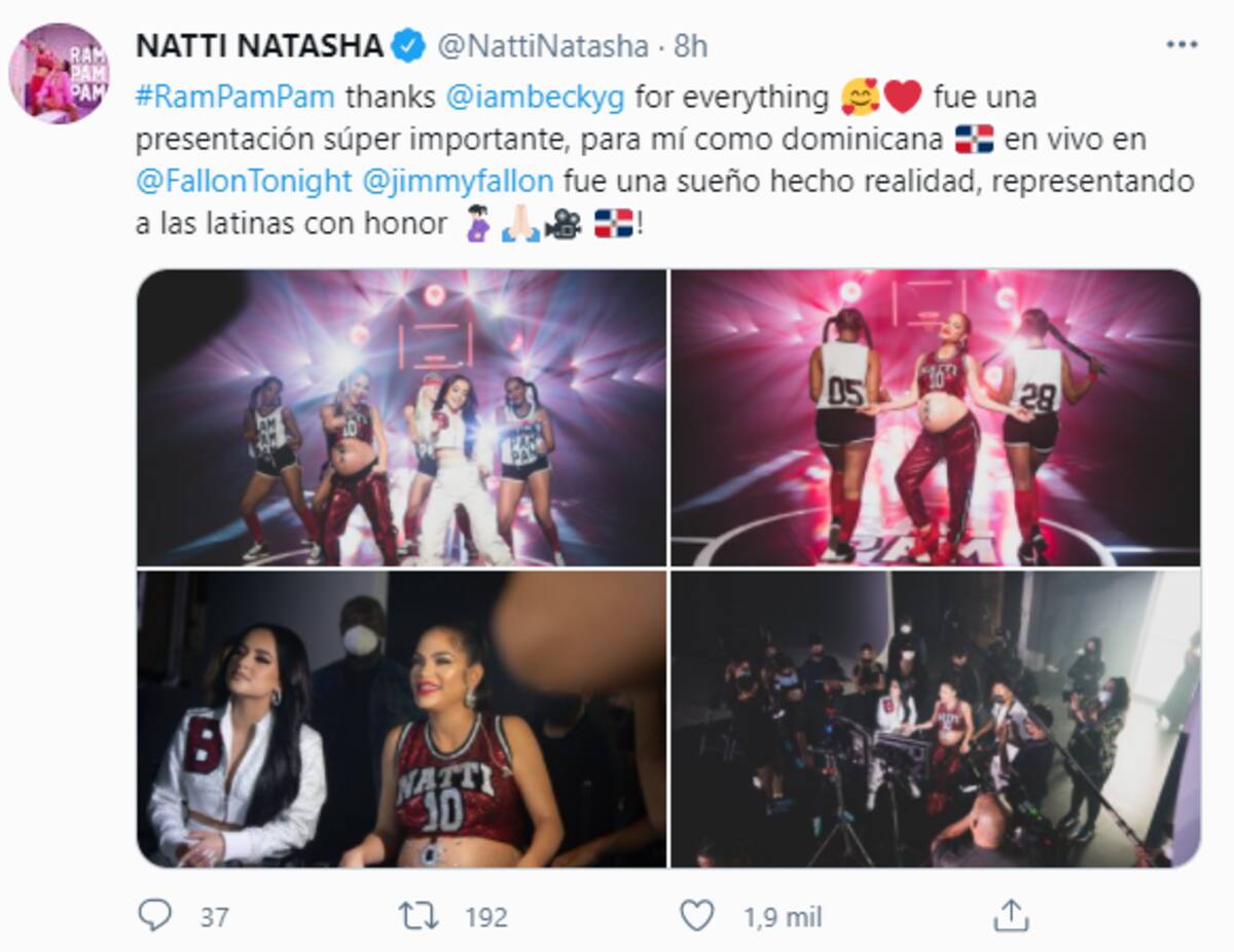 LOS ÁNGELES, California. -Natti Natasha, reconocida cantante y compositora dominicana, sorprendió a sus fans con una presentación en vivo en el programa de Jimmy Fallon con Becky G, con quien interpretó su más reciente éxito “Ram Pam Pam”.