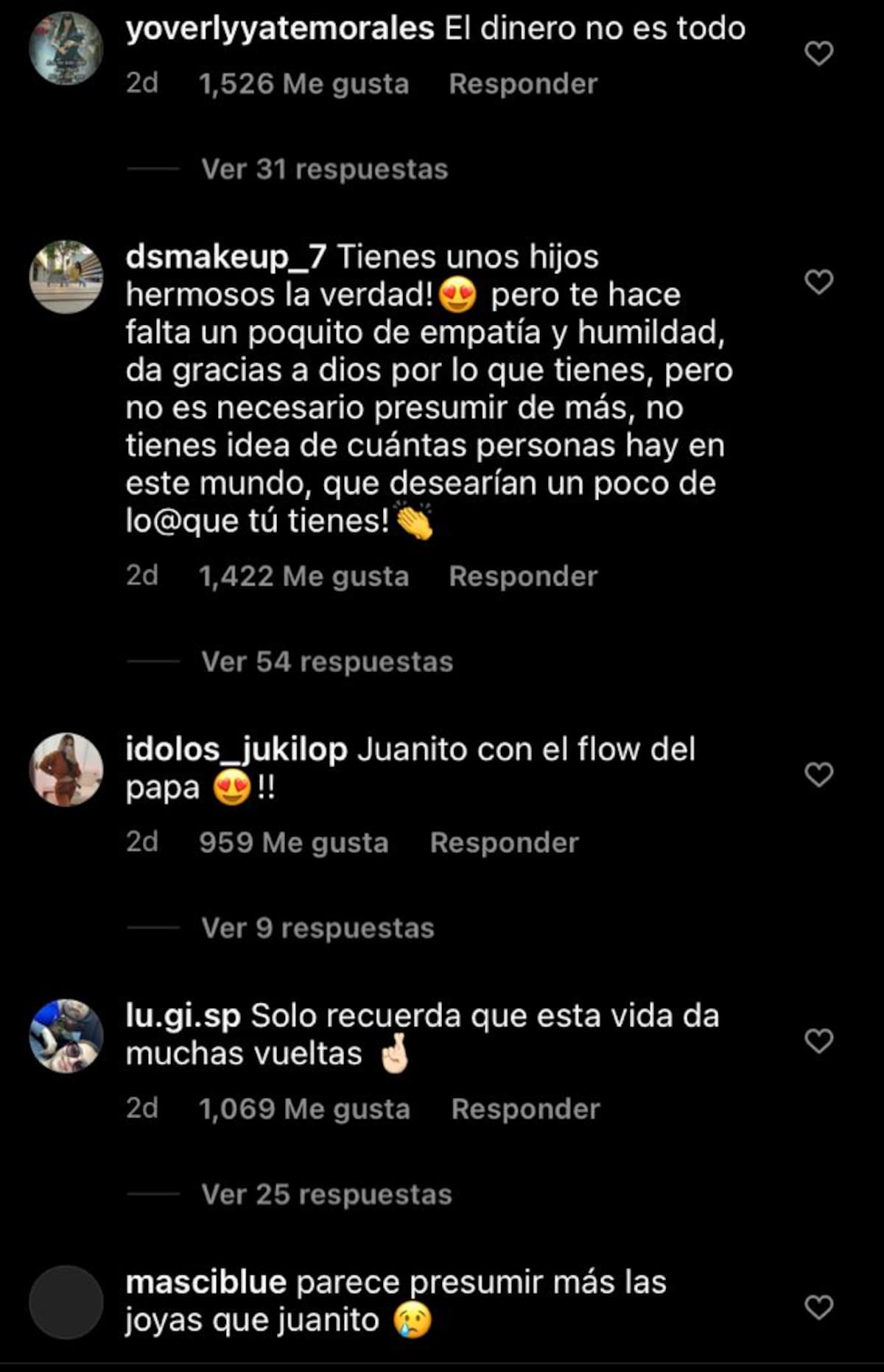 Algunos de los mensajes eran críticas sobre su falta de humildad y empatía por las personas de bajos recursos, y le recordaron que el dinero no lo es todo en la vida.