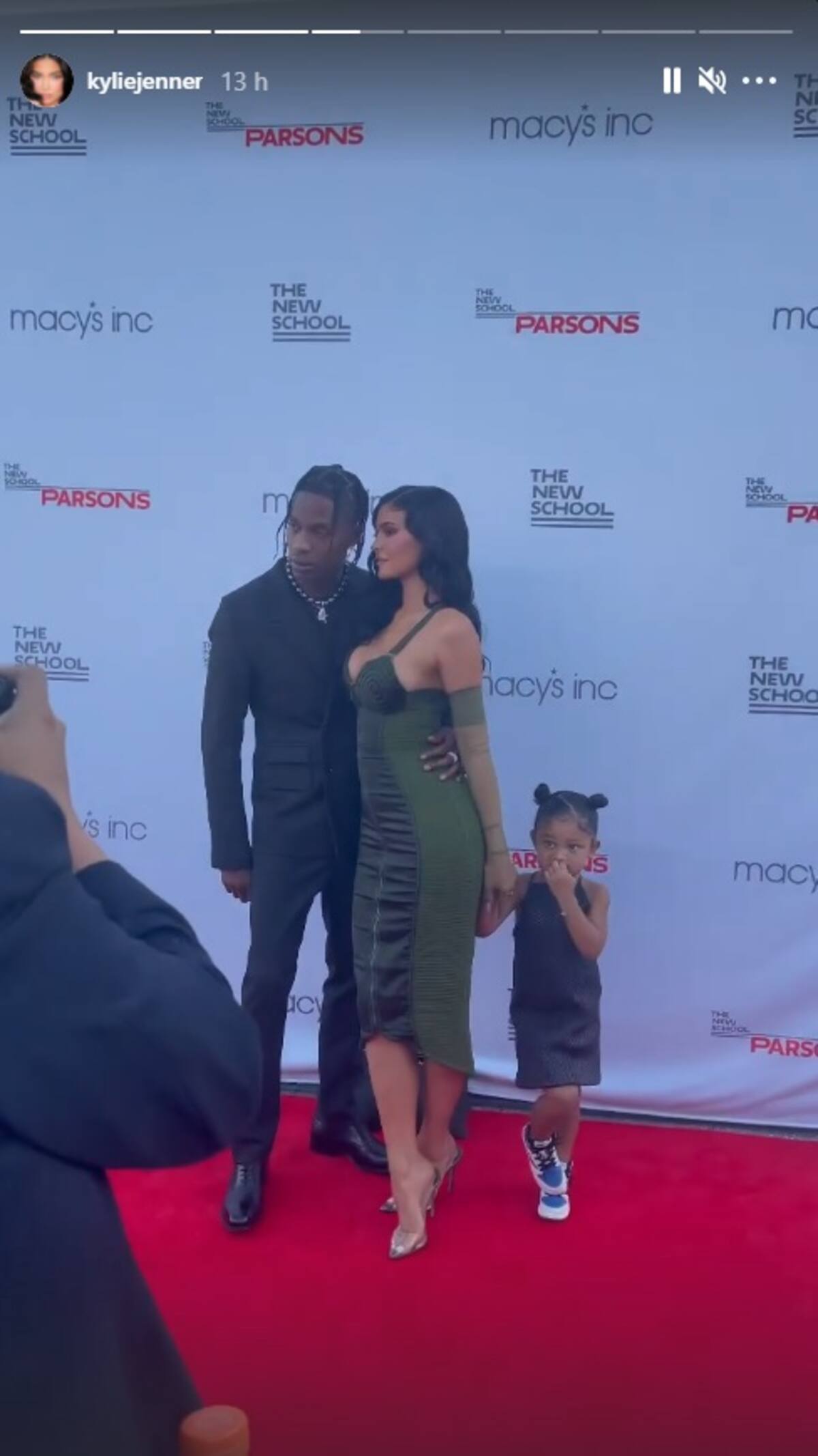 Stormi parecía un poco tímida ante los paparazis, pero posó con sus padres modelando un vestido negro con tirantes y un par de tenis Nike.