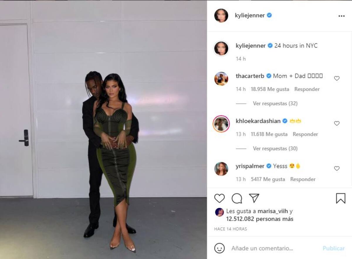 En su cuenta de Instagram, Kylie publicó una foto con Travis, en la que el cantante la abraza y ella pone en el pie de foto: “24 horas en Nueva York”.