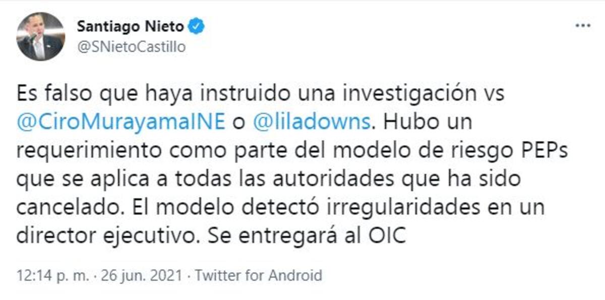 Peniley Ramírez destacó que el Santiago Nieto, titular de la UIF, le dijo que sí había una investigación hacia los funcionarios, ya que habían encontrado registros de hasta 48 millones de pesos en gastos en tarjetas American Express, pero desconocía que Lila Downs estaba involucrada y que la estaban investigando.