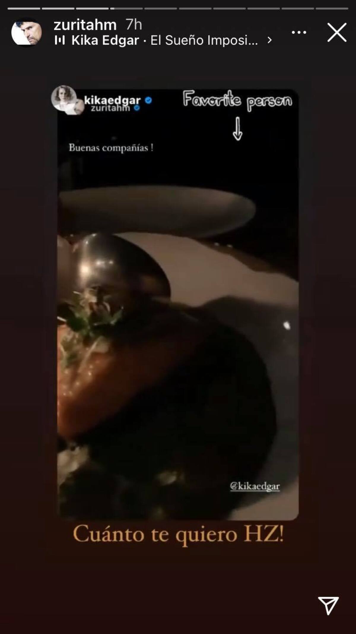 Este fue el caso de lo ocurrido la noche del viernes, cuando ambos compartieron en las stories de su perfil en Instagram la misma escena, un momento íntimo donde se puede apreciar como Kika Edgar realiza un pequeño clip compartiendo su platillo de salmón y apreciando al fondo a Humberto Zurita.
