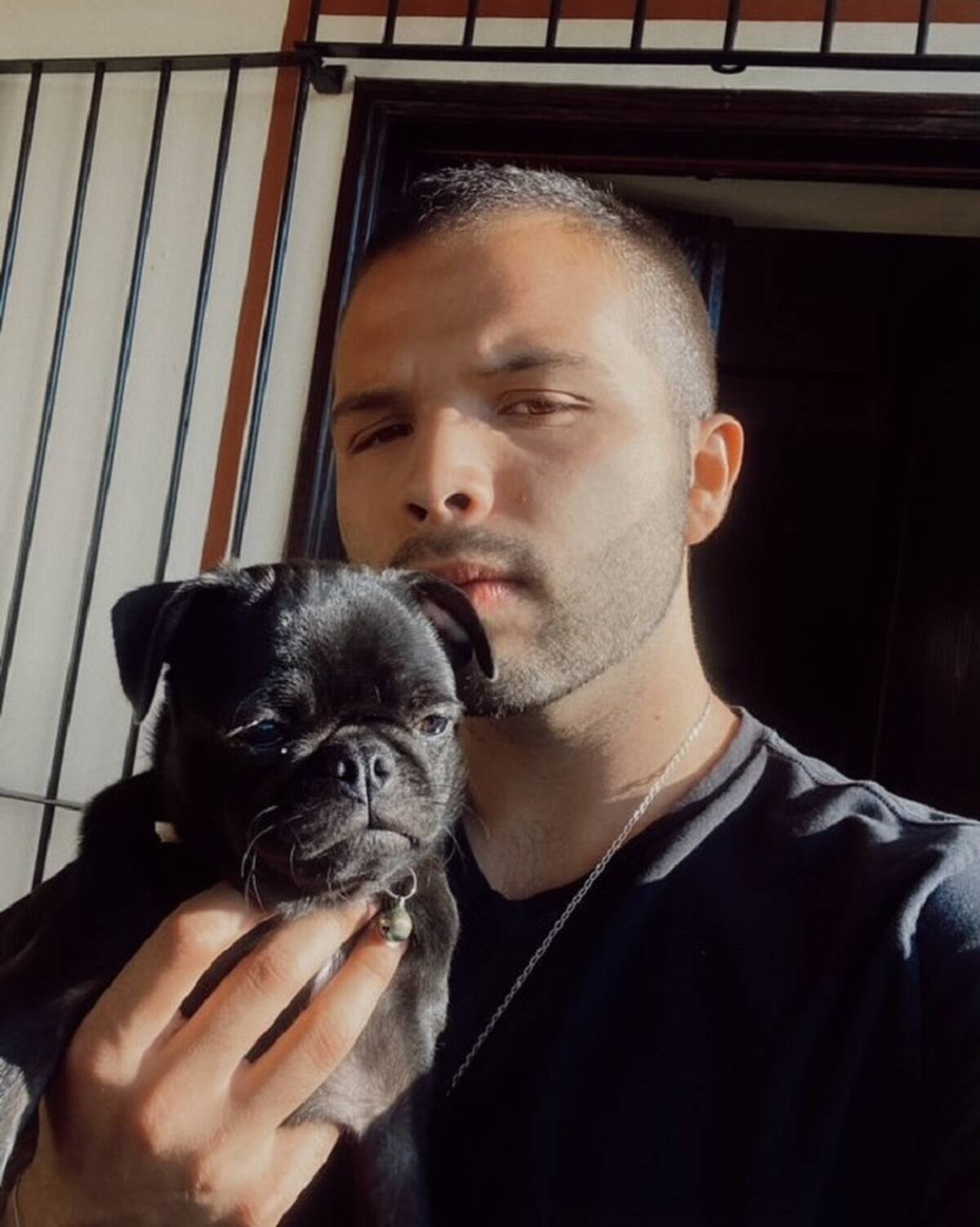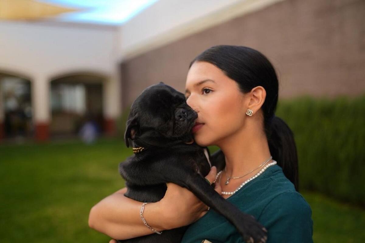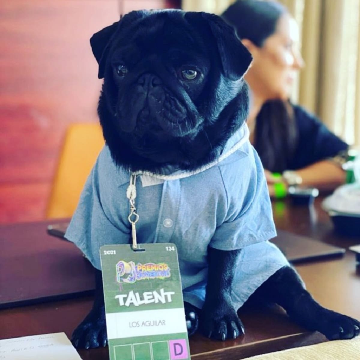 Así es, el famoso pug, color negro azabache, el más suertudo de la camada, ya que tienen varios, tantos, que hasta desfiló con su outfit en la alfombra de Premios Juventud el pasado jueves 22.