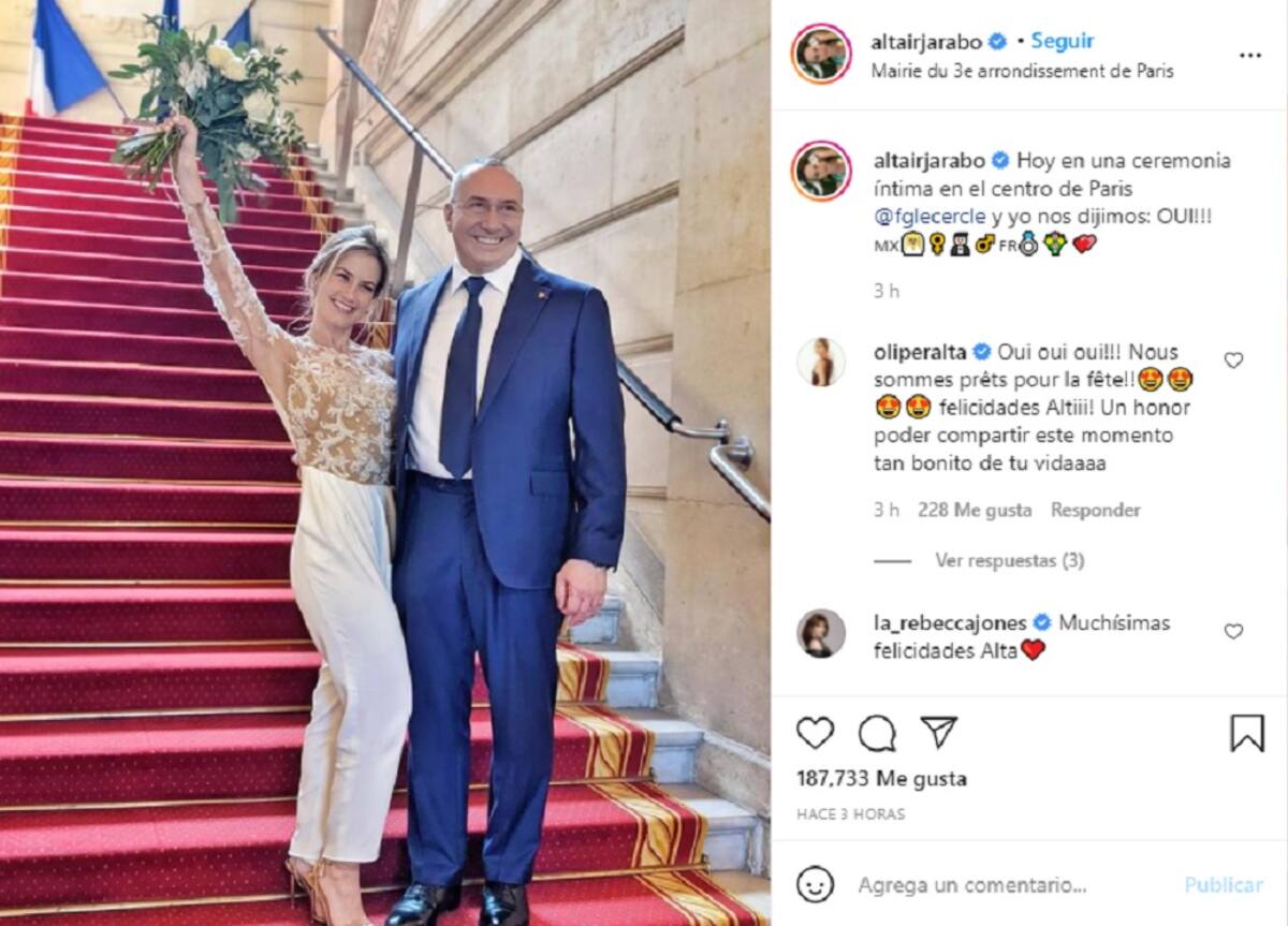 "Hoy en una ceremonia íntima en el centro de Paris @fglecercle y yo nos dijimos: OUI!!!", se lee en el mensaje que acompaña la instantánea.