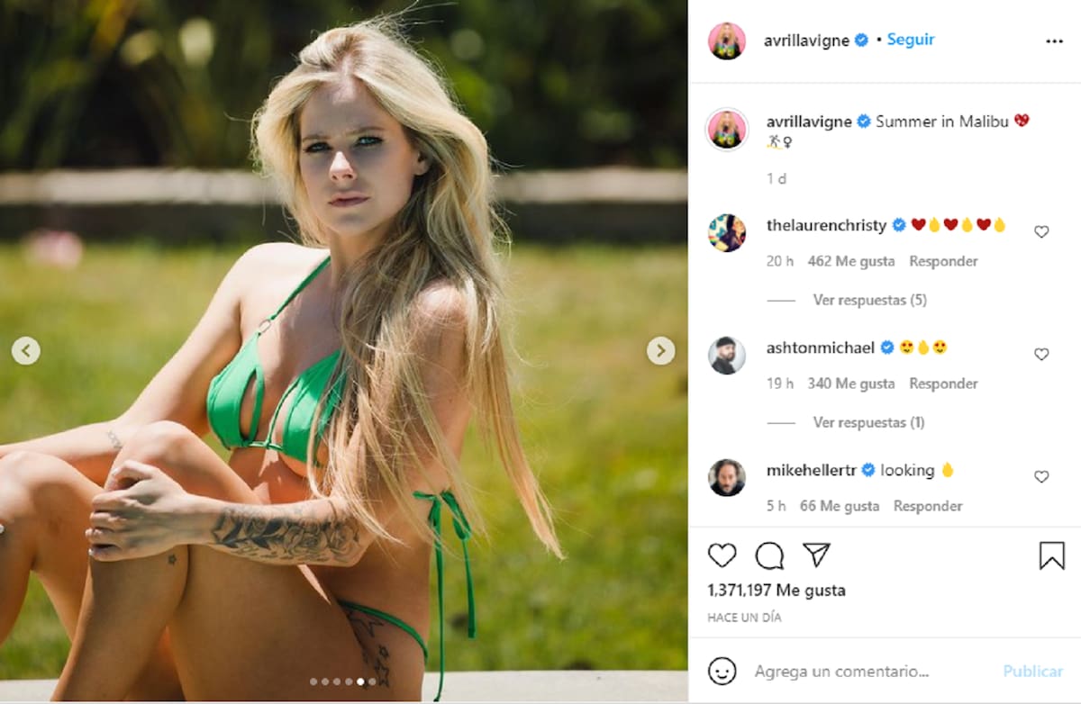 Tijuana BC.- La cantante canadiense Avril Lavigne causó furor en redes tras publicar una serie de fotos en bikini en su cuenta de Instagram. Sus admiradores se mostraron sorprendidos y coinciden en que ‘’No ha envejecido nada’’