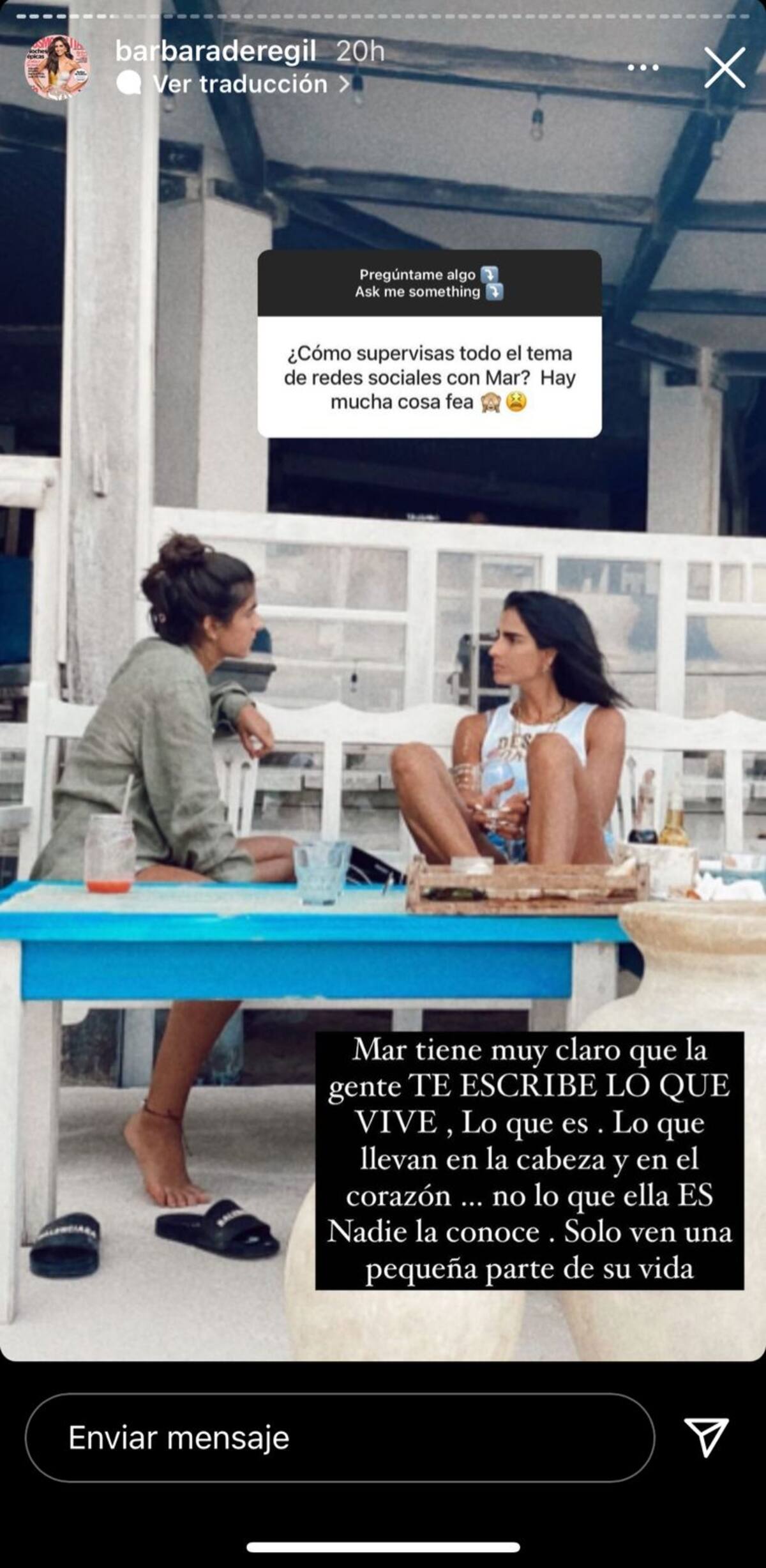 Bárbara de Regil se le puede ver que mantiene una relación muy cercana a lado de su hija, tan es así que en alguno de sus en vivos, donde brinda clases gratis de ejercicio a sus fanáticos, Mar siempre le acompaña.