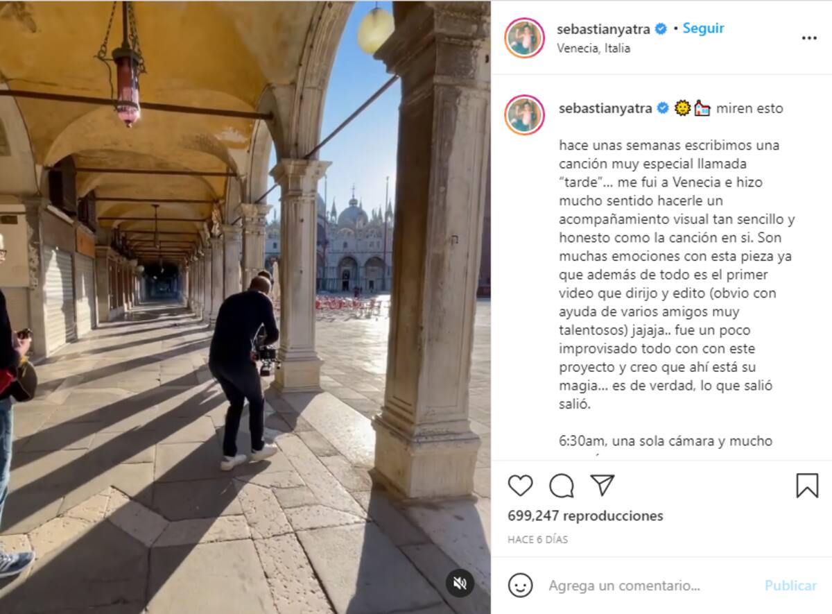 MÉXICO.- Hace dos días que Sebastián Yatra estrenó su más reciente canción titulada “Tarde”, junto a un videoclip que el cantante colombiano dirigió y ayudó a editar, el cual se grabó en Venecia, Italia.
