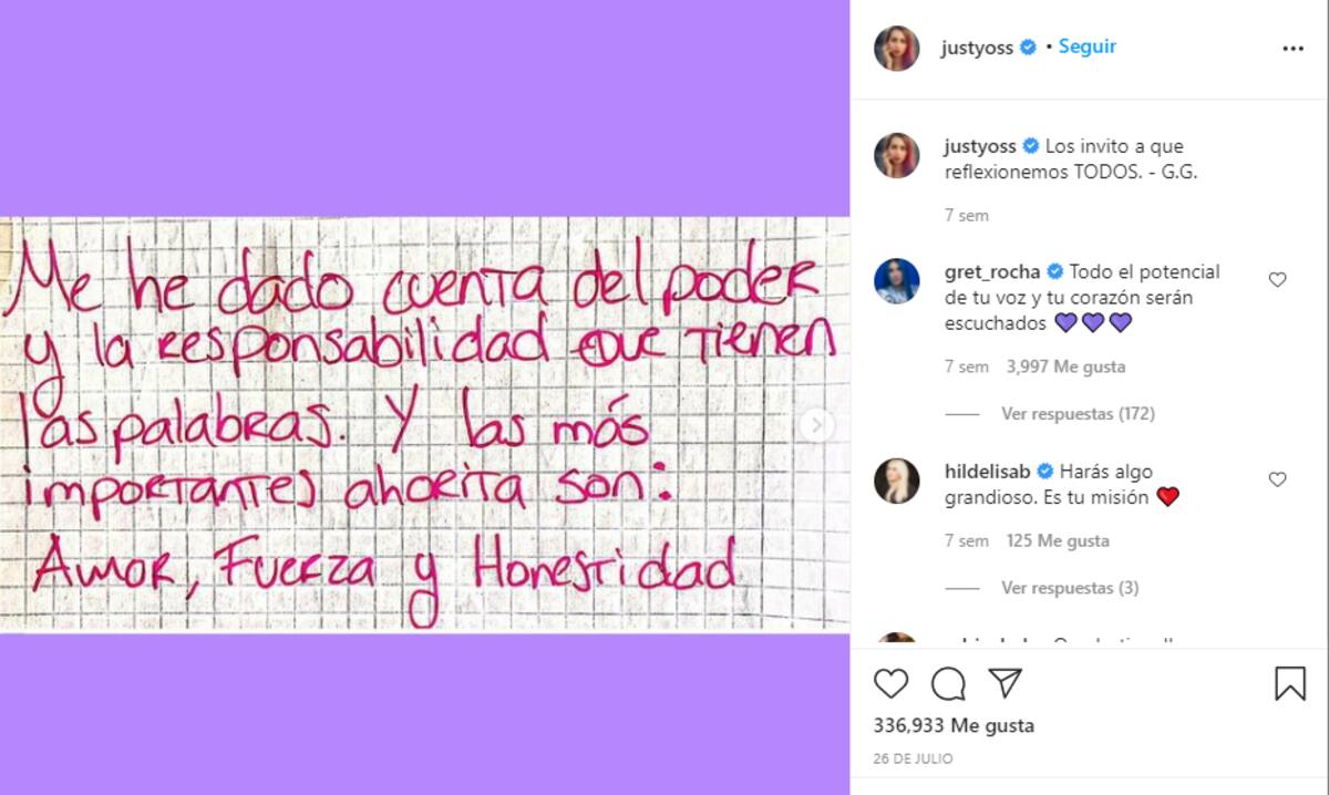 Yosseline “N” compartió ciertos fragmentos de una de las cartas que recibió, la cual afirma que le hizo sentir algo diferente, pues comprobó que, a pesar de que no la conozcan en persona, es posible crear un vínculo con sus seguidores donde el cariño y el apoyo son un pilar importante.