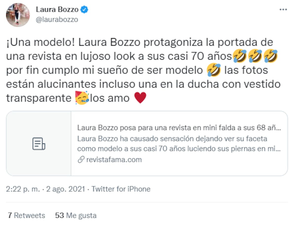 A pesar de que varios creen que se trata de una broma o un buen photoshop, la cuenta oficial de la revista publicó la imagen de Laura Bozzo posando con el emblemático vestido, lo que cumplió un sueño de la presentadora de televisión de ser modelo a sus casi 70 años de edad.