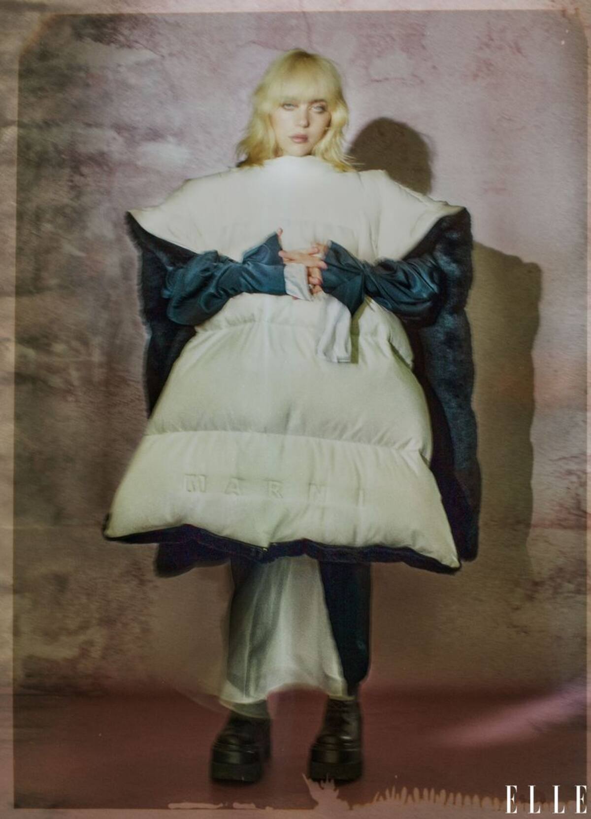 Eilish para su sesión portó una serie de prendas oversize muy a su estilo, pero asesorada por los expertos de en stylist de la revista Elle, quienes eligieron algunos diseñadores para vestir a la cantante para su photoshoot.
