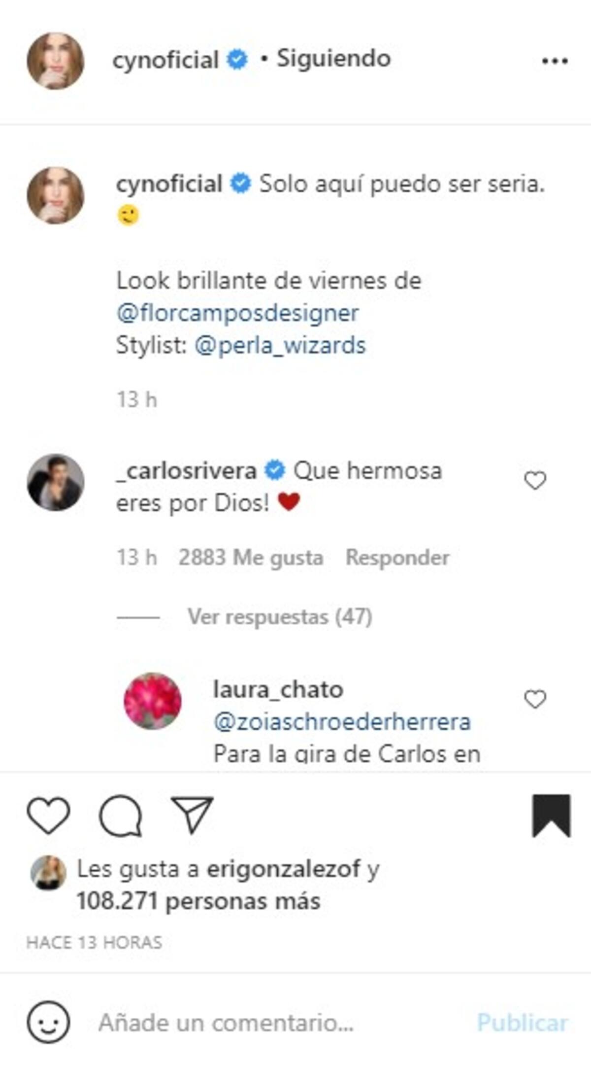 Carlos Rivera le envía piropos a Cynthia Rodríguez en Instagram