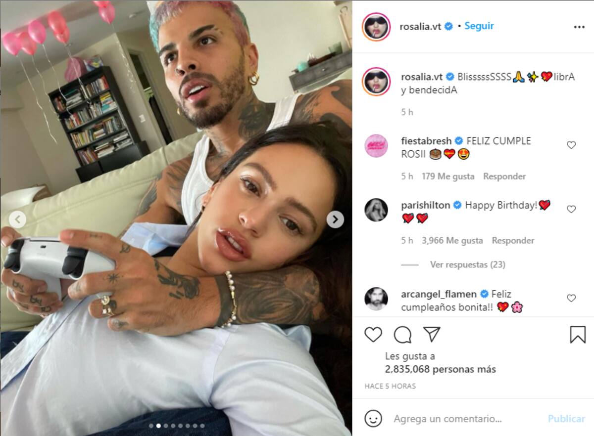 En las imágenes que compartió Rosalía en sus redes sociales, aparecía muy pegada al puertorriqueño, ya que estaba recostada sobre sus piernas mientras él jugaba algún videojuego.