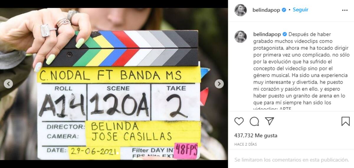 Después de haber grabado muchos videoclips como protagonista, ahora me ha tocado dirigir por primera vez uno complicado, no solo por la evolución que ha sufrido el concepto del videoclip, sino por el género musical. Ha sido una experiencia muy interesante y divertida, he puesto mi corazón y pasión en ello”, escribió Belinda.