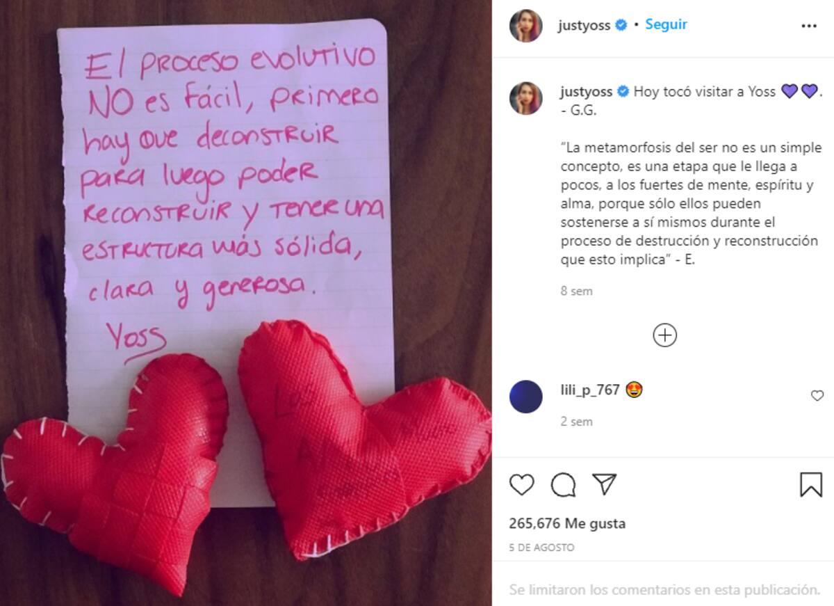 MÉXICO.- Yosseline "N", conocida como YosStop, sigue impresionando a los internautas con los mensajes que envía desde el penal y que comparte a través de su novio, Gerardo González, quien se encarga de las redes sociales de su pareja mientras ella sigue vinculada a proceso por las acusaciones de pornografía infantil contra Ainara Suárez.