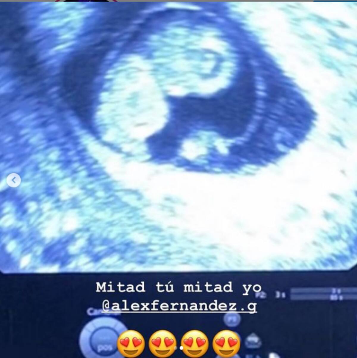 En esta ocasión, la futura madre compartió con sus seguidores una imagen del primer ultrasonido. Aunque la esposa del cantante tiene su cuenta privada, el programa Hoy subió la fotografía en la que se logra distinguir la cabeza del futuro bebé. “Mitad tú y mitad yo” fueron las palabras con las que Alexia acompañó la imagen.