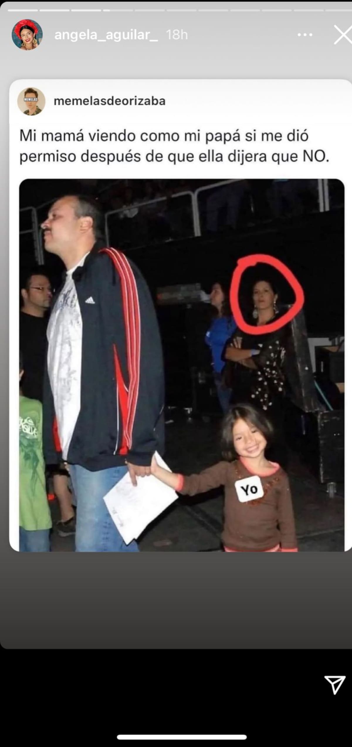 En esta ocasión Ángela por medio de su cuenta de Instagram publicó un meme que realizó al cuenta de @memesdeorizaba en el que recrearon una situación con una fotografía en la que aparece a lado de sus padres.