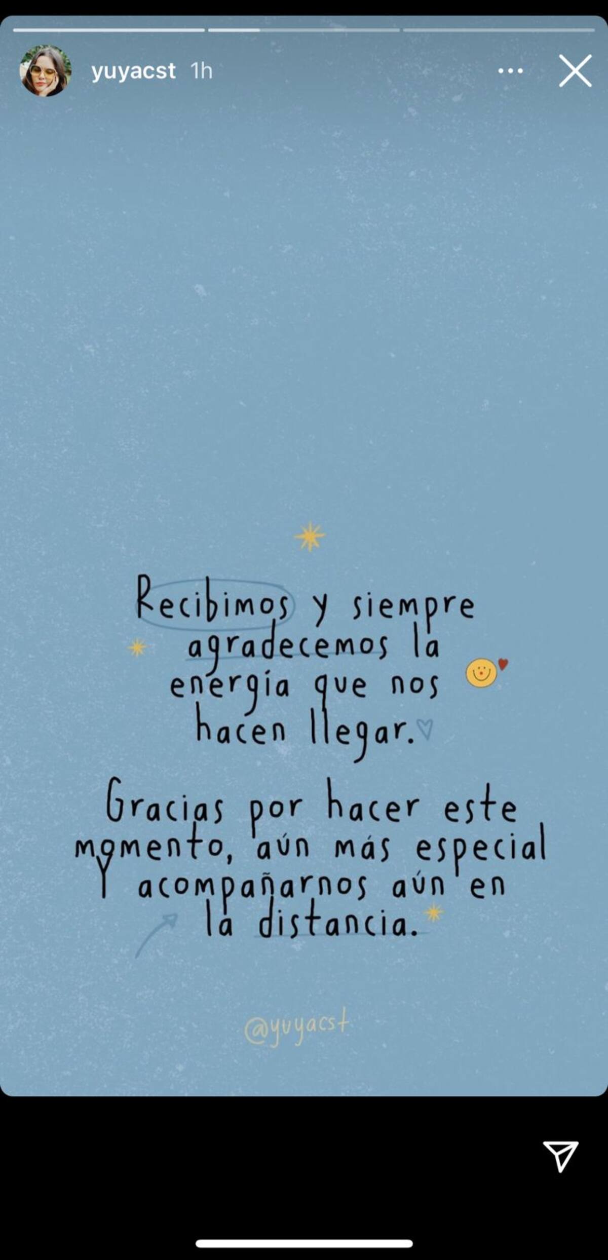Recibimos y siempre agradecemos la energía que nos hacen llegar. Gracias por hacer este momento aún más especial, acompañarnos aún en la distancia” escribió la YouTuber.
