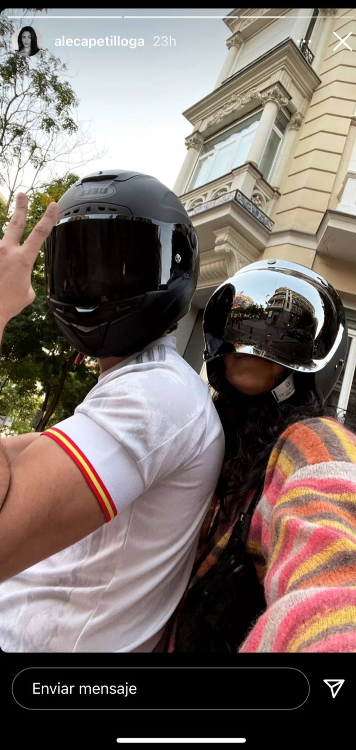 Sin embargo recientemente Ale Capetillo sorprendió a sus fanáticos con una fotografía que compartió en sus historias, donde aparece a lado de un joven, al parecer dando un paseo en motocicleta.
