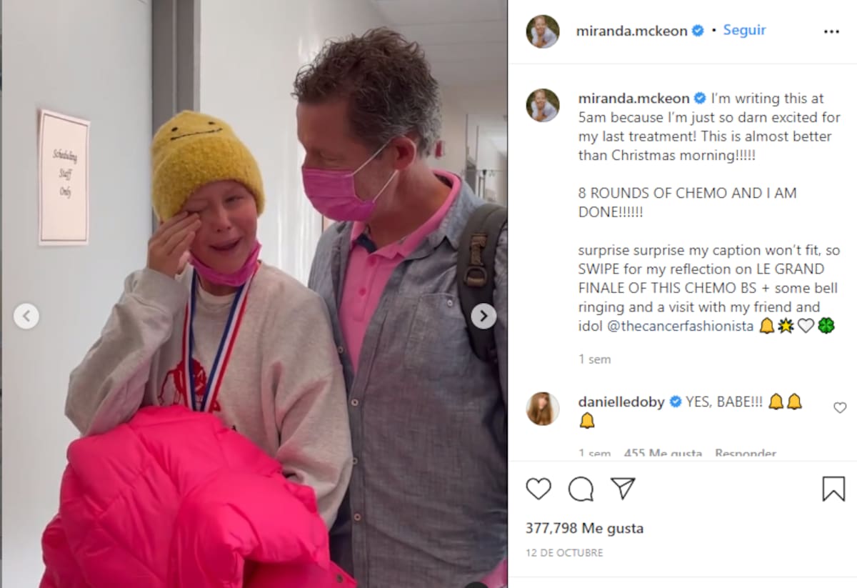 Entre sus publicaciones, Miranda McKeon incluyó un emotivo video donde aparece llorando al tocar la campana por vencer esta dura batalla. Entre lágrimas, sonidos de campana, aplausos y gritos de alegría, la joven de 19 años por fin pudo compartir con alegría que había recibido su última quimioterapia. "Es tiempo de celebrar con un 'hurra'. Qué gran sentimiento, qué gran día".