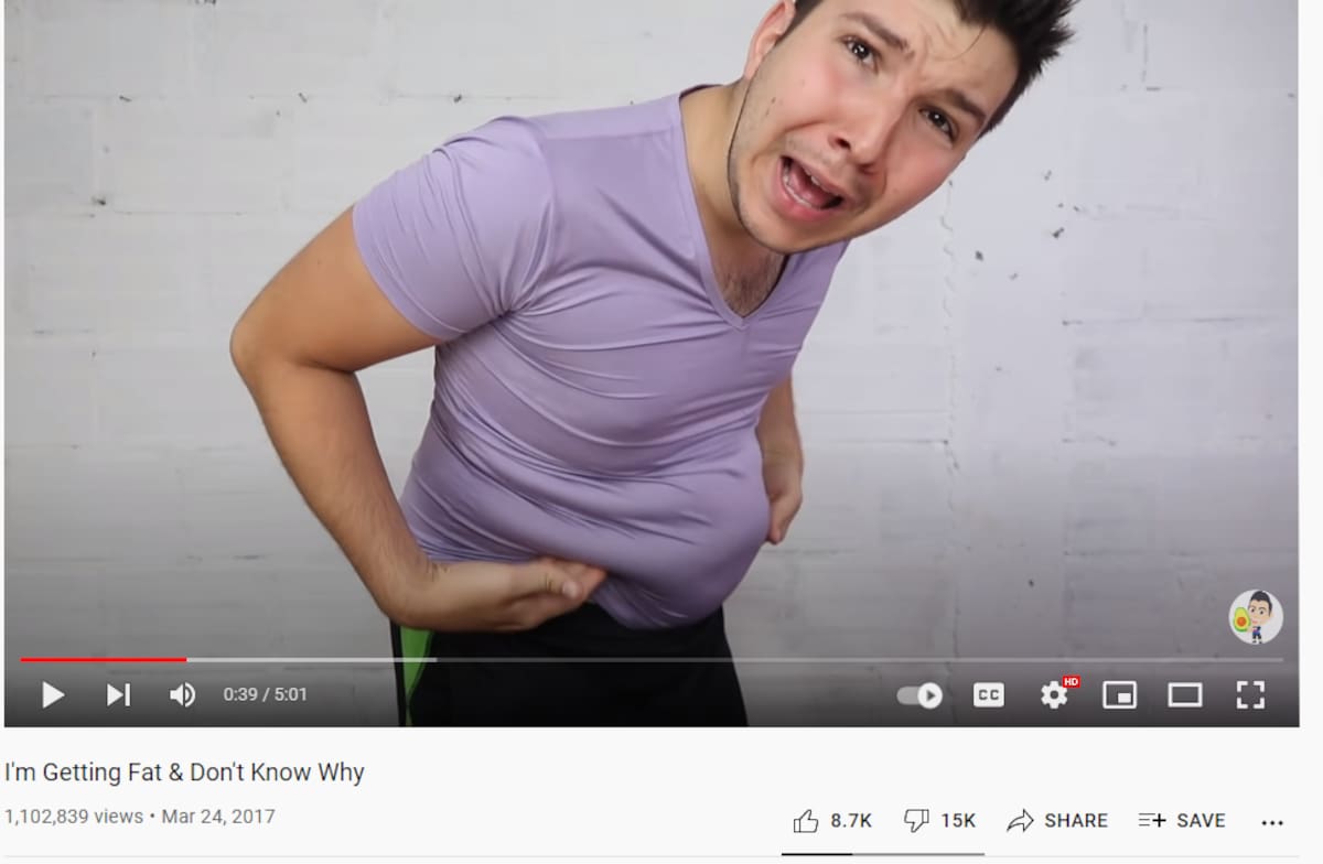 De hecho tiene un video titulado "Me estoy volviendo gordo y no sé por qué" donde menciona que se siente consternado por todo el peso que ganó.