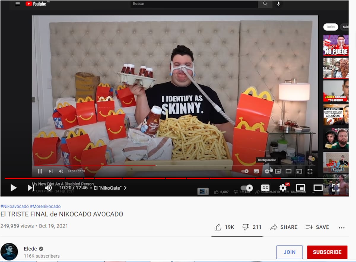ESTADOS UNIDOS.- El joven Nicholas Perry, originario de Ucrania, cobró fama en Estados Unidos gracias a sus videos de Youtube donde come grandes cantidades de comida. En la plataforma se le conoce como Nikocado Avocado y ha llamado la tención de sus espectadores ya que, a causa de su contenido, ha llegado a poner en riesgo su salud.