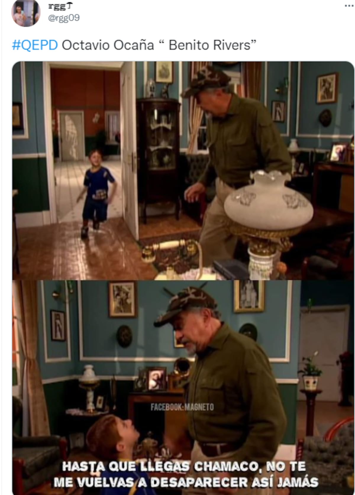 CIUDAD DE MÉXICO.- Benito Rivers se convirtió en uno de los personajes más queridos del famoso programa de "Vecinos", pues durante 11 temporadas, el actor Octavio Ocaña protagonizó los momentos más icónicos y divertidos de la televisión mexicana. Por lo que el actor será recordado con cariño y sus seguidores conmemaron su vida con algunos memes virales de su personaje.