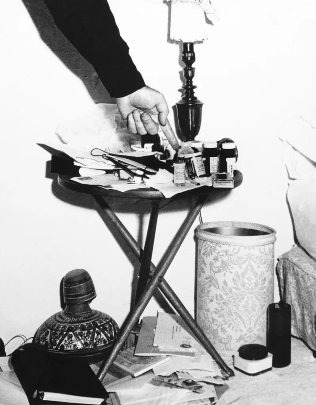 Marilyn Monroe fue encontrada en la habitación de su casa en 1962 y se dice que tuvo una sobredosis de pastillas de la noche anterior, a juzgar por los medicamentos y recetas encontradas en su mesita de noche.