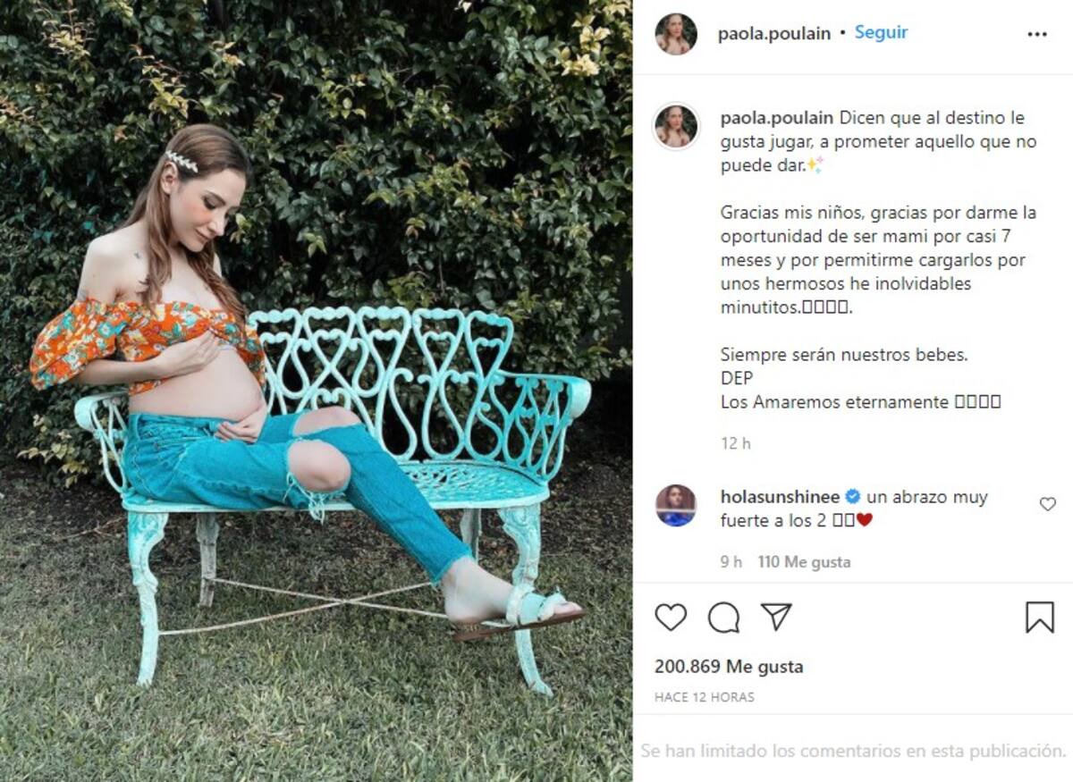 Hace unas horas por medio de la cuenta de Instagram de Paola Pulain, compartió una fotografía de su embarazo donde dio a conocer la lamentable pérdida de sus dos hijos, con un mensaje que conmovió a sus fanáticos.