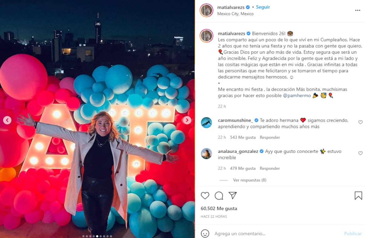 Los atletas más destacados decidieron celebrar junto a Mati Álvarez , conocida por ser la querida "Golden Champion" tras su éxito en el reality de competencias , quien bailó, cantó, sonrió y celebró a lo máximo para recibir con alegría sus 26 vueltas al sol.