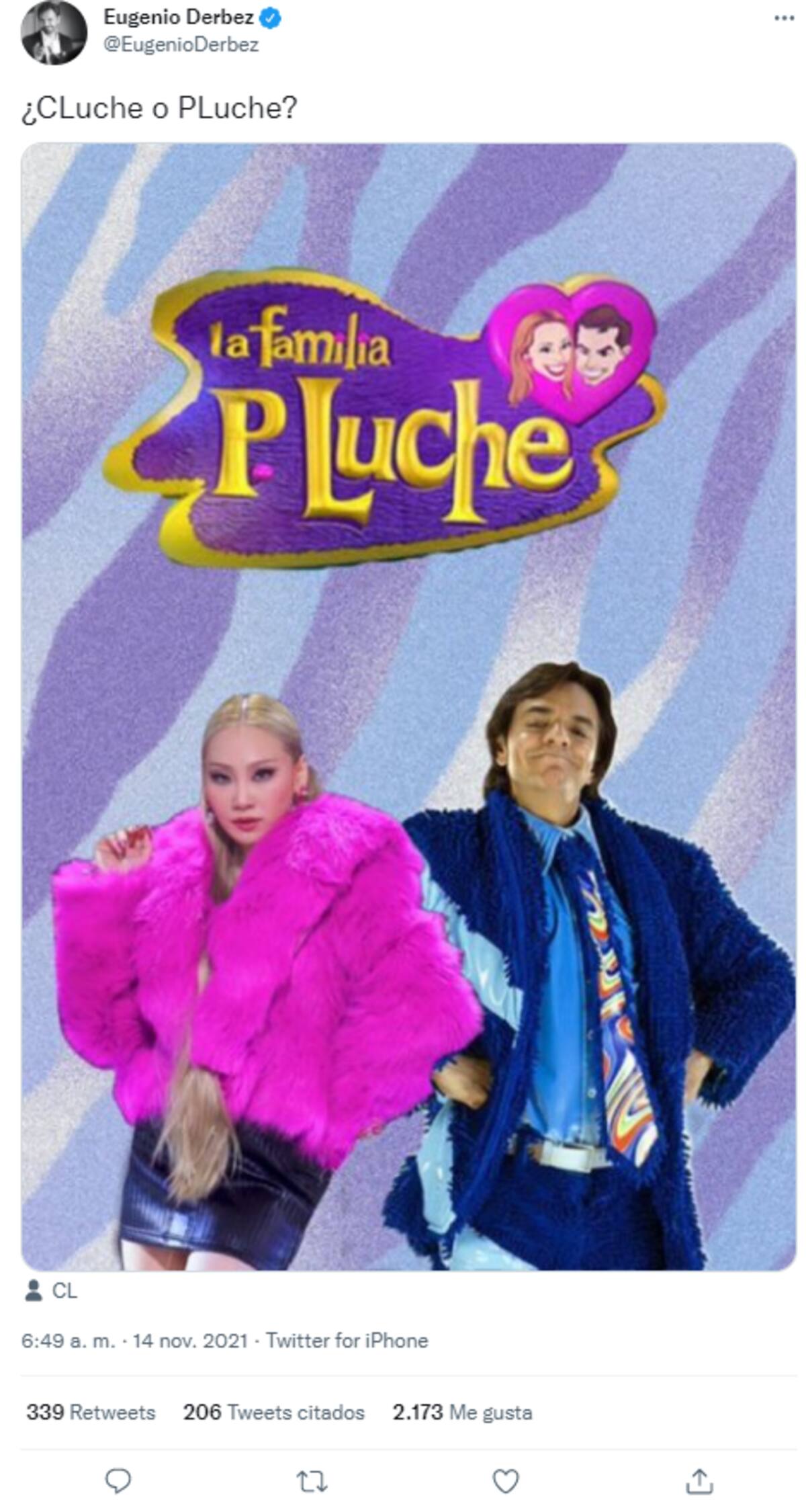 "¿CLuche o PLuche?", fue lo que escribió Derbez en la imagen junto a la rapera surcoreana en la que salía con un gran abrigo de peluche, muy al estilo de la exitosa serie del productor. Ante la gracia que causó la fotografía, rápidamente se viralizó en Internet entre los seguidores del protagonista de "No se aceptan devoluciones" y de Chaelin CL.