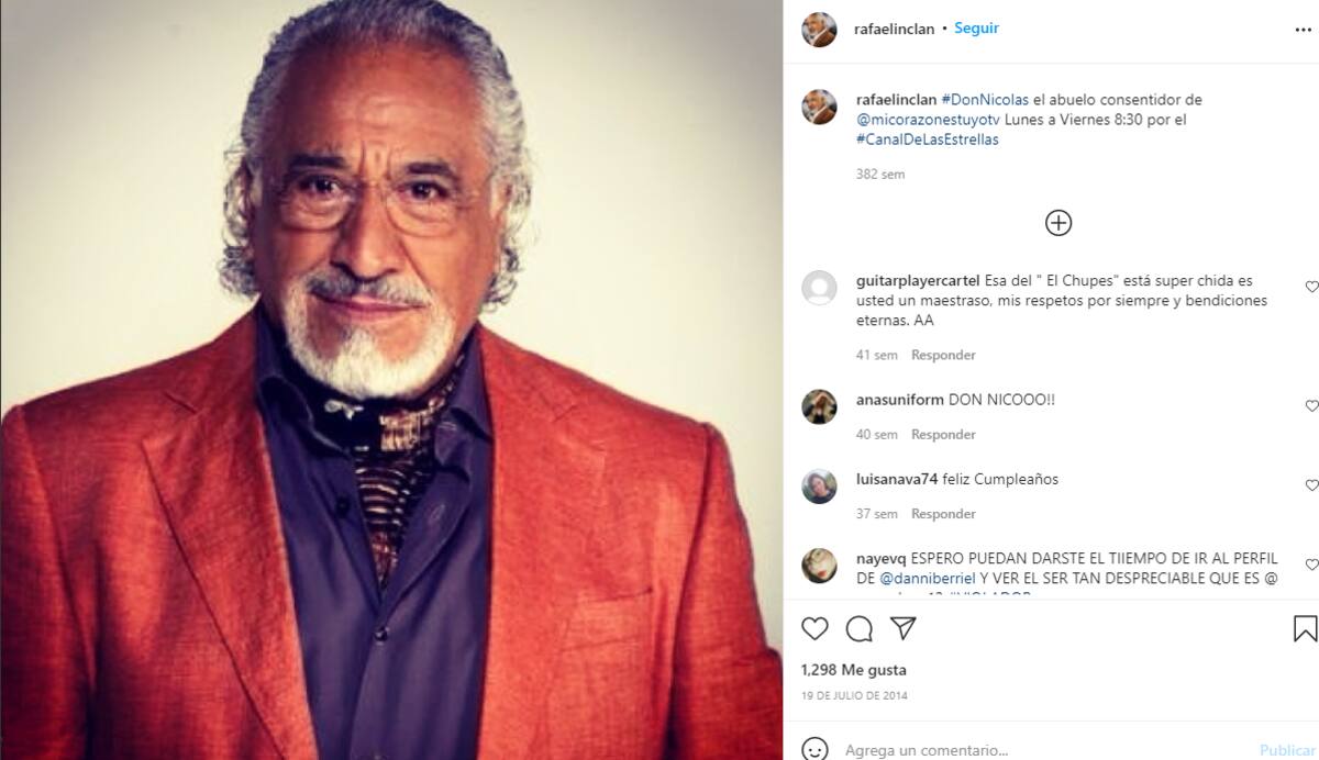 Ahora fue el turno de Rafael Inclán, quien se sumó a la larga lista de artistas que conmemoran la vida de la primera actriz y se unieron en oraciones para pedir por la pronta recuperación de la famosa de 82 años, luego de que el pasado 10 de noviembre fuera hospitalizada debido a una hemorragia cerebral, según indicaron sus familiares en algunas entrevistas para la prensa.