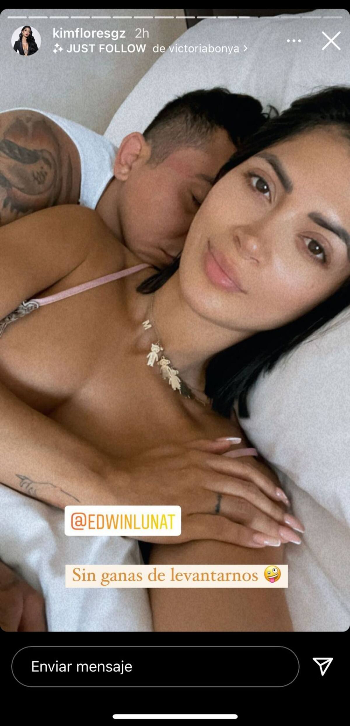 Kimberly Flores y Edwin Luna posan desde la cama con poca ropa