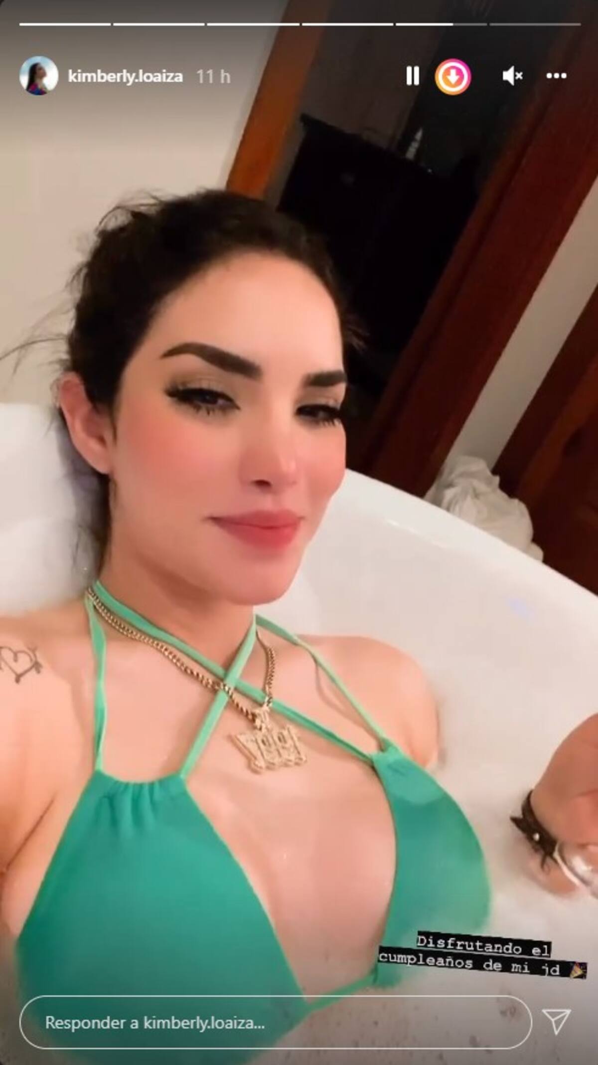 En una de sus historias Kim aparece desde una tina, acompañada de su esposo y un par de copas al parecer festejando su cumpleaños.