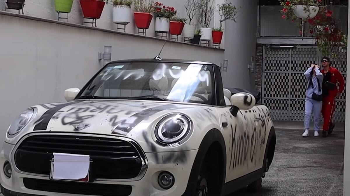 Para la también ‘influencer’ pensó que sería “divertido” grafitear el vehículo de la “lindurita mayor”, en un inicio le decidio poner distintas frases en las puertas y en la parte delantera, para después quitar toda las llantas y que pensaran que había sido “vandalizado”.