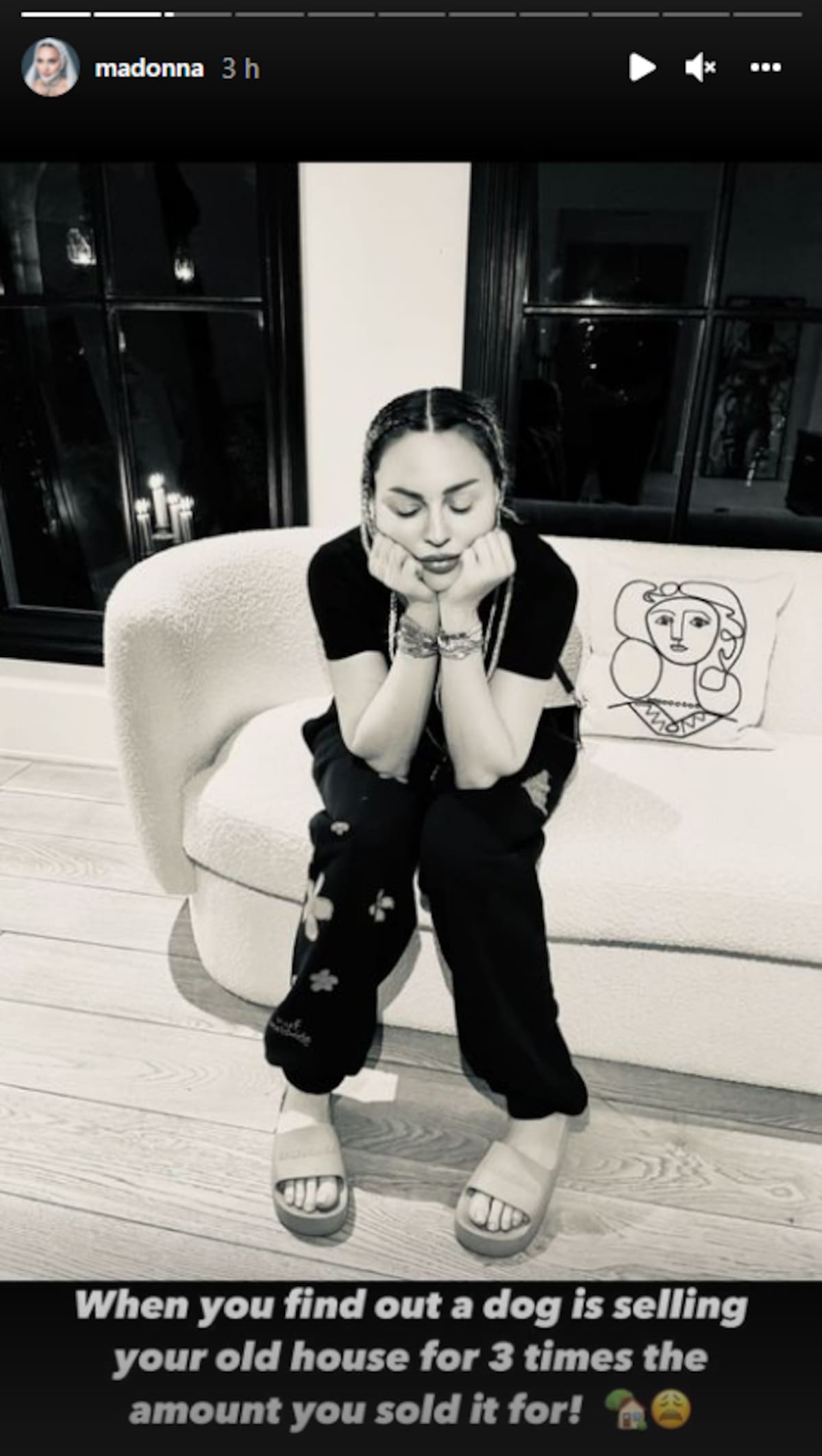 Madonna reaccionó en redes sociales a la noticia usando una fotografía de ella donde luce angustiada y donde escribió: