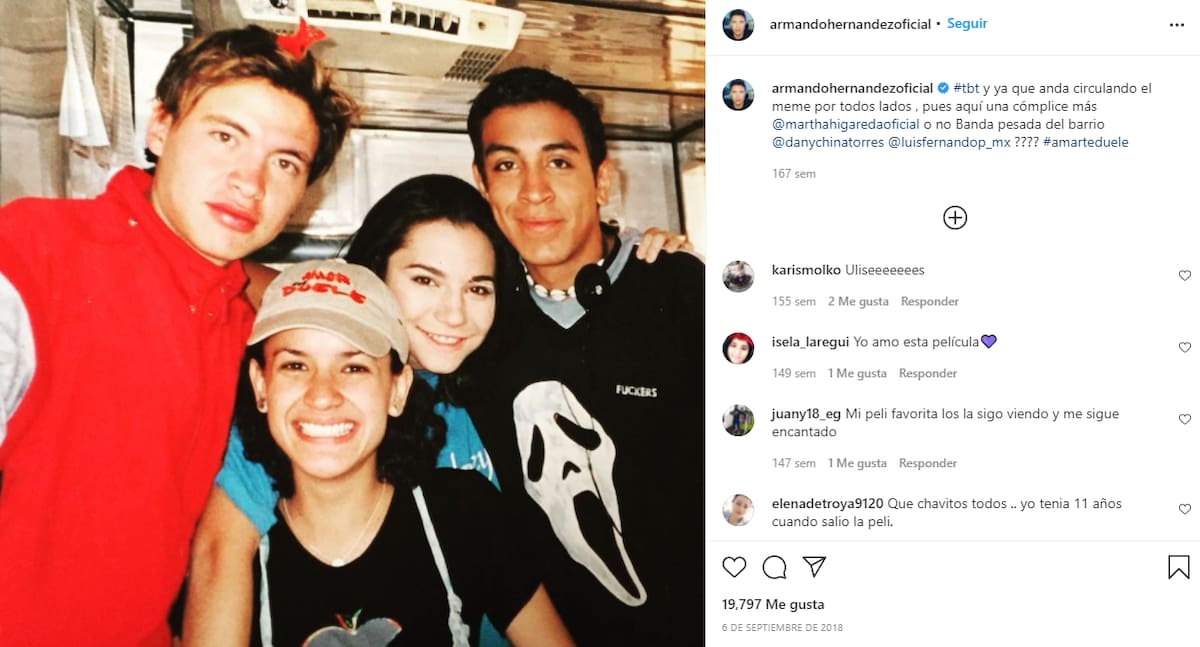 CIUDAD DE MÉXICO.- Sin duda alguna, la película "Amarte Duele" generó gran impacto para las nuevas y pasadas generaciones que le dieron el reconocimiento y popularidad a los protagonistas, Martha Higadera y Luis Fernando Peña, además del resto del elenco como Ximena Sariñana.