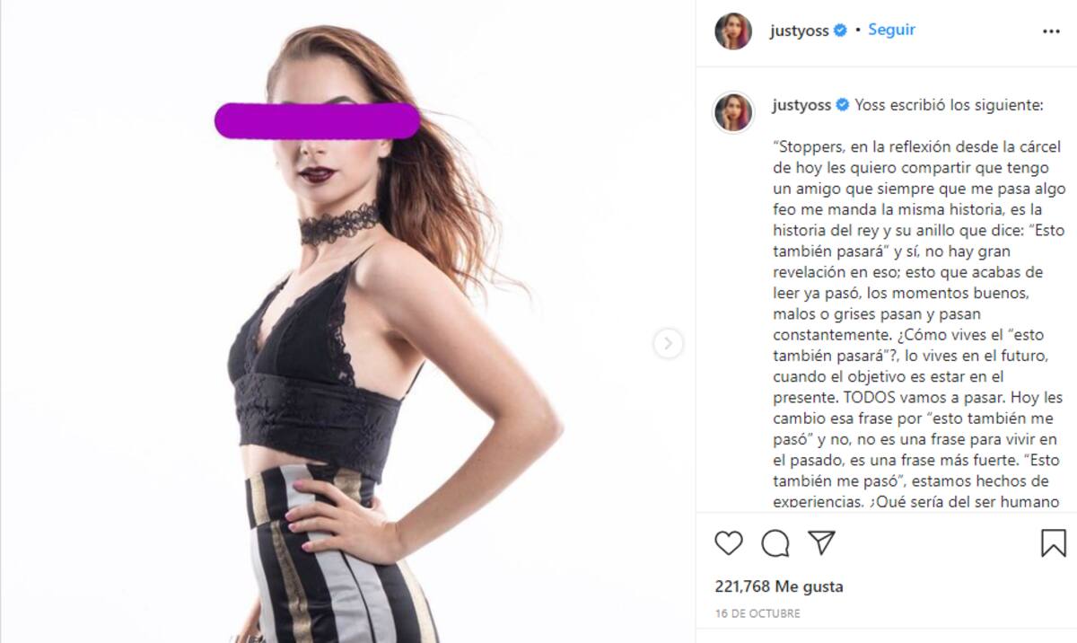 De acuerdo a la descripción que escribió junto a una imagen de Yosseline "N" 'entre rejas', se leía: “Hoy visité a Yoss y le conté la noticia: ‘...’ (después de un silencio, Yoss rompió en llanto)”.