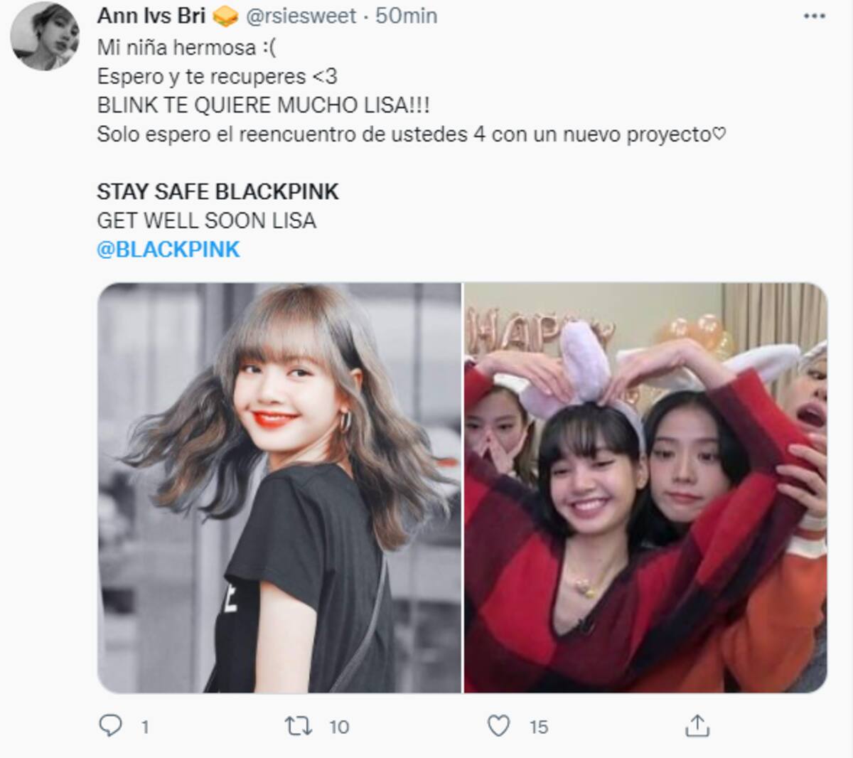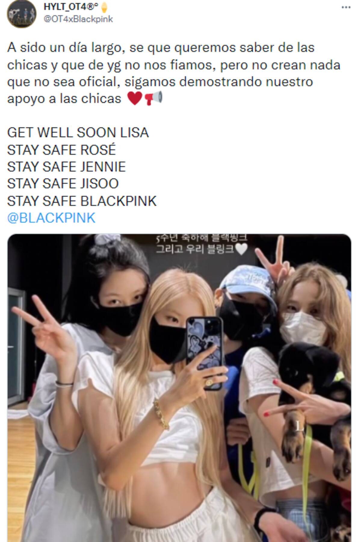 Incluso, el hashtag STAY SAFE BLACKPINK se posicionó en el puesto número 6 de las tendencias de la red social, donde miles de usarios compartieron varias imágenes de BLACKPINK, de Lisa, además de mensajes de apoyo y cariño hacia una de sus artistas favoritas.